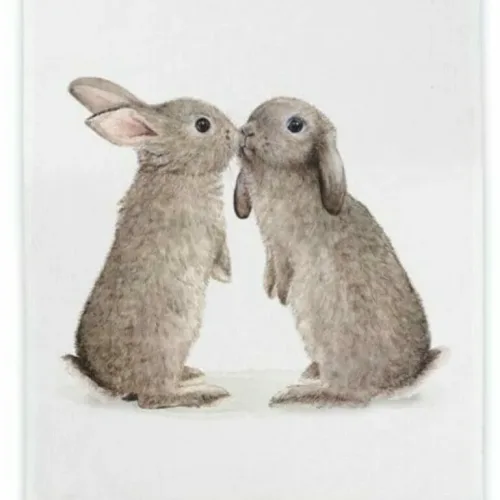 Flot viskestykke med to kære kaniner på lys baggrund.