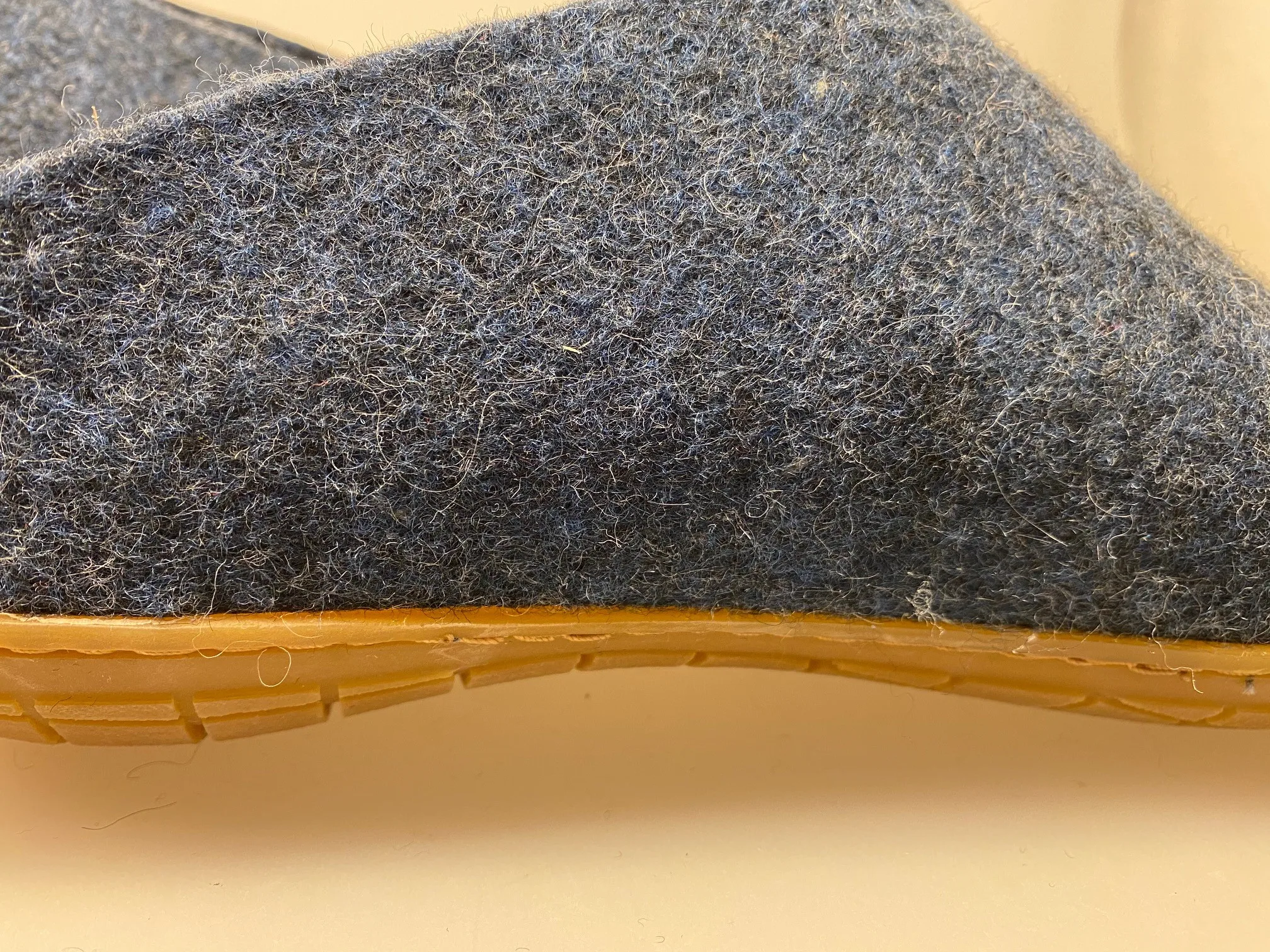 Filtede hjemmesko – Tøffel i ren uld med gummisål Blå