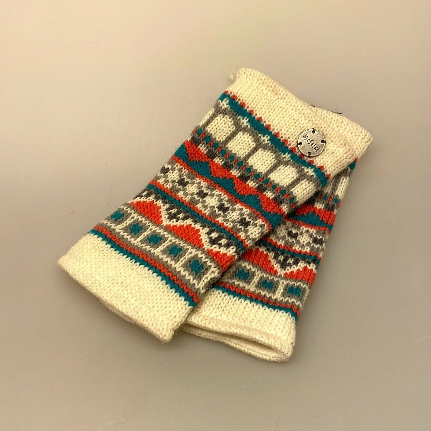 Vanterne er håndstrikkede Fairtrade i Nepal og de er foret med et behageligt lag naturfarvet fleece, som gør dem vindtætte og bløde imod huden.