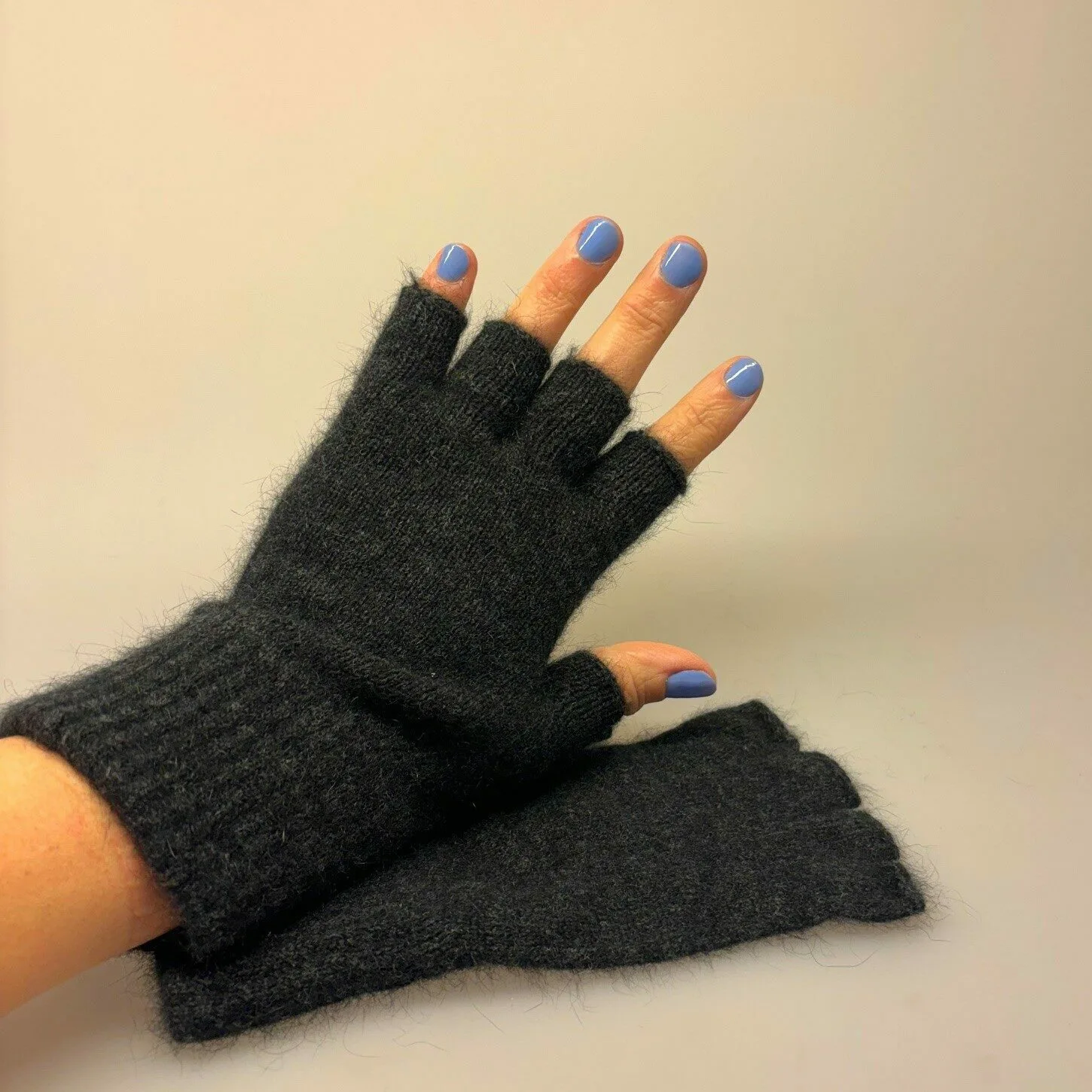 Smarte strikkede vanter med korte fingre i lækker possum, uld og silke.