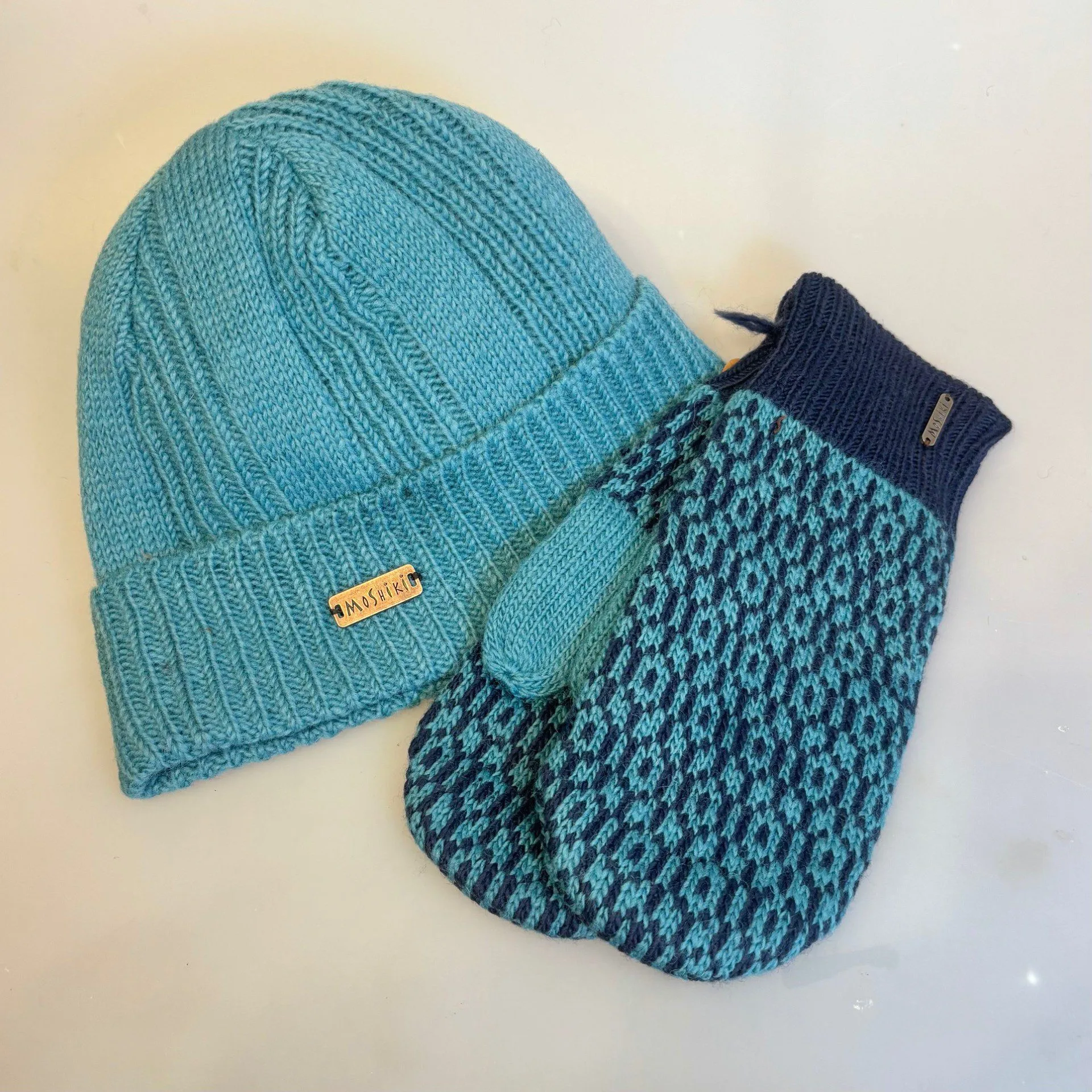Strikkede Luffer Uld med Bomuldsfoer – Kajash Blå