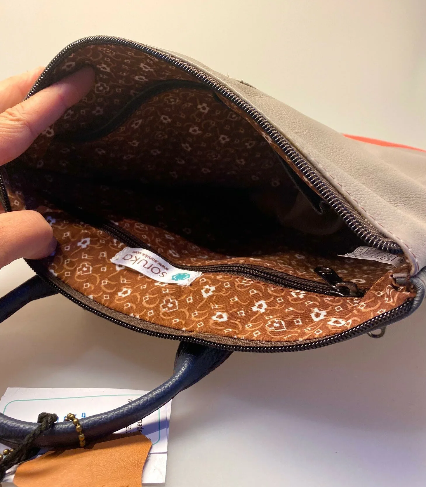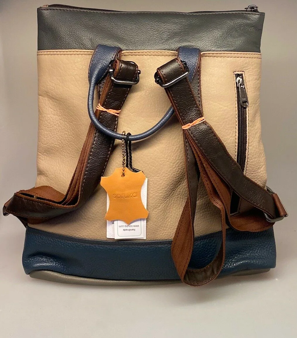 Flot og lækker rygsæk af vegetabilsk garvet læder fra det spanske firma Soruka, der gør en dyd ud af at skabe noget smukt ud af overskydende kvalitets materiale fra anden læderproduktion. Virksomheden skaber smukke ting af lækre materialer. Modellerne er klassiske, men alt sammen bliver til flotte unika stykker, idet den samme farvekombination aldrig vil opstå mere end én gang.