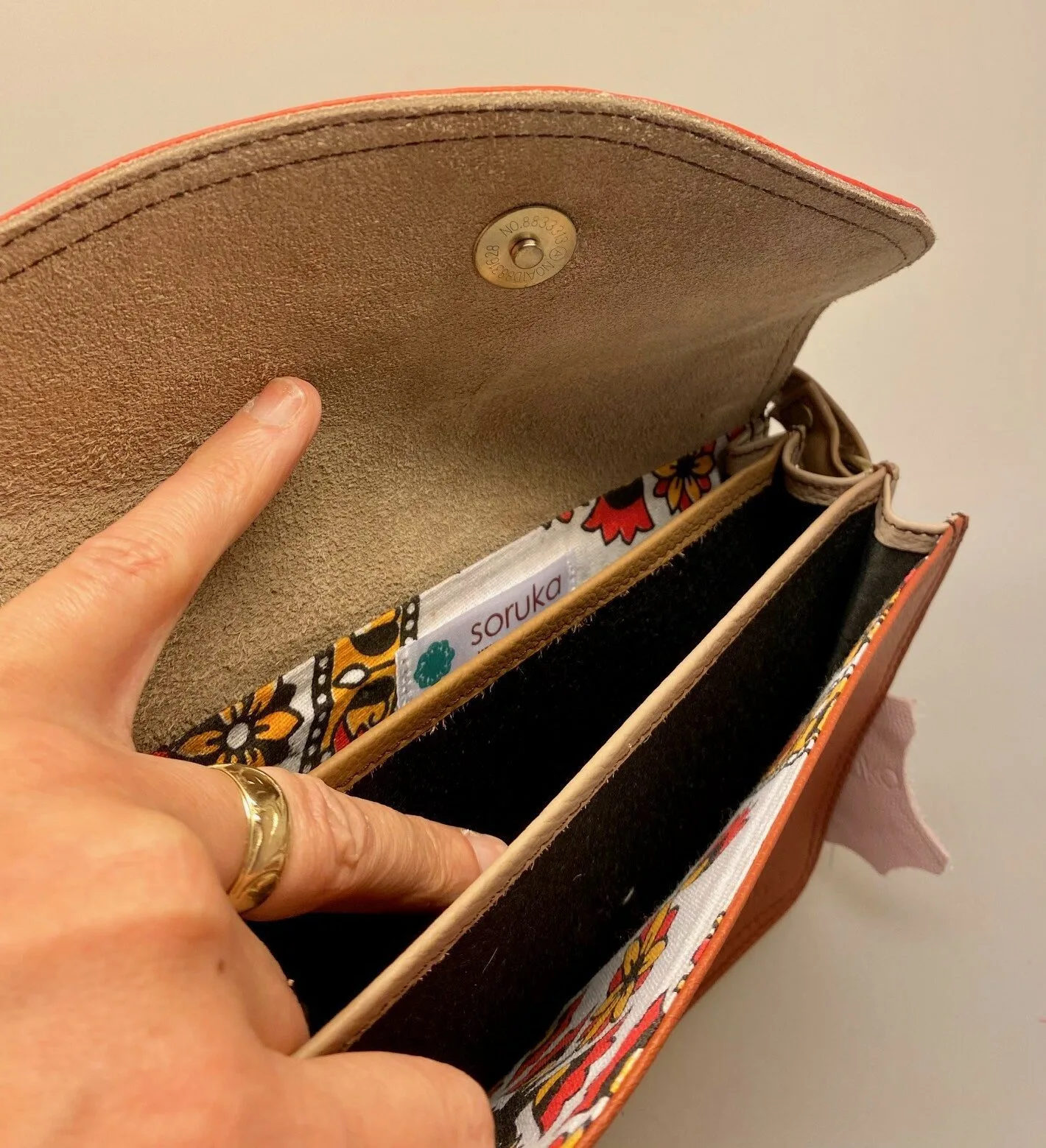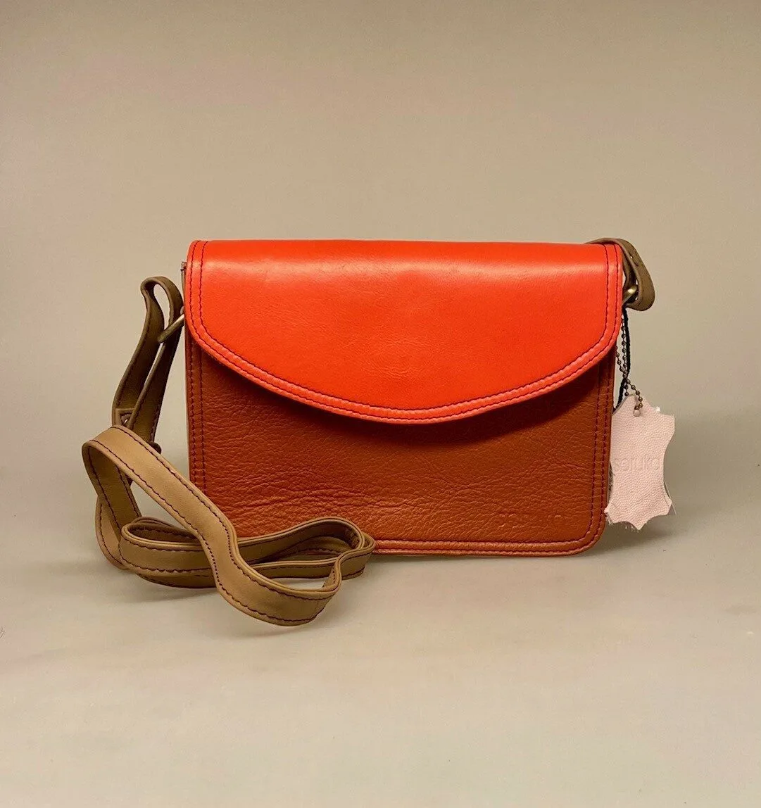 Flot, enkel taske af vegetabilsk garvet læder fra det spanske firma Soruka, der gør en dyd ud af at skabe noget smukt ud af overskydende kvalitets materiale fra anden læderproduktion. Virksomheden skaber smukke ting af lækre materialer. Modellerne er klassiske, men alt sammen bliver til flotte unika stykker, idet den samme farvekombination aldrig vil opstå mere end én gang.