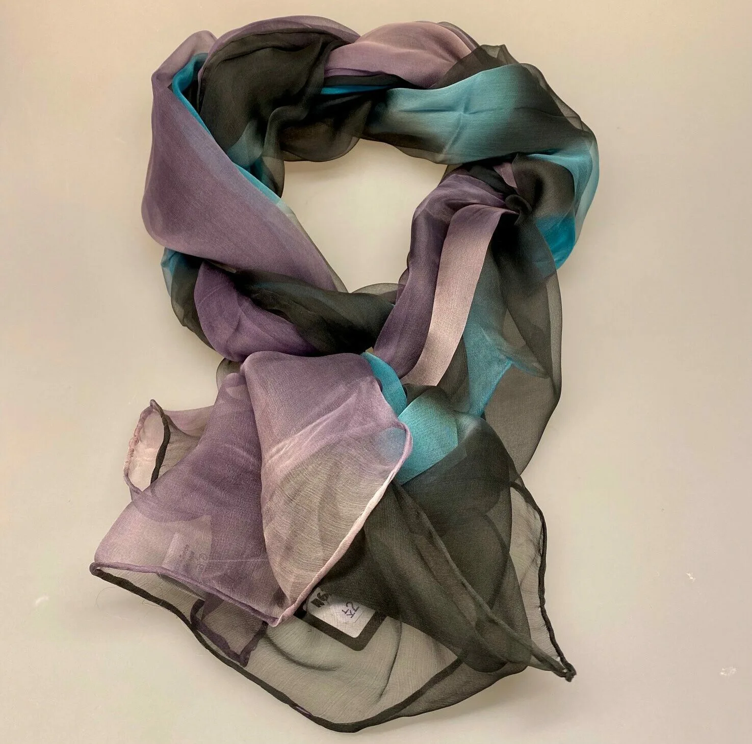 Flot og let stort tørklæde af koloreret silkechiffon