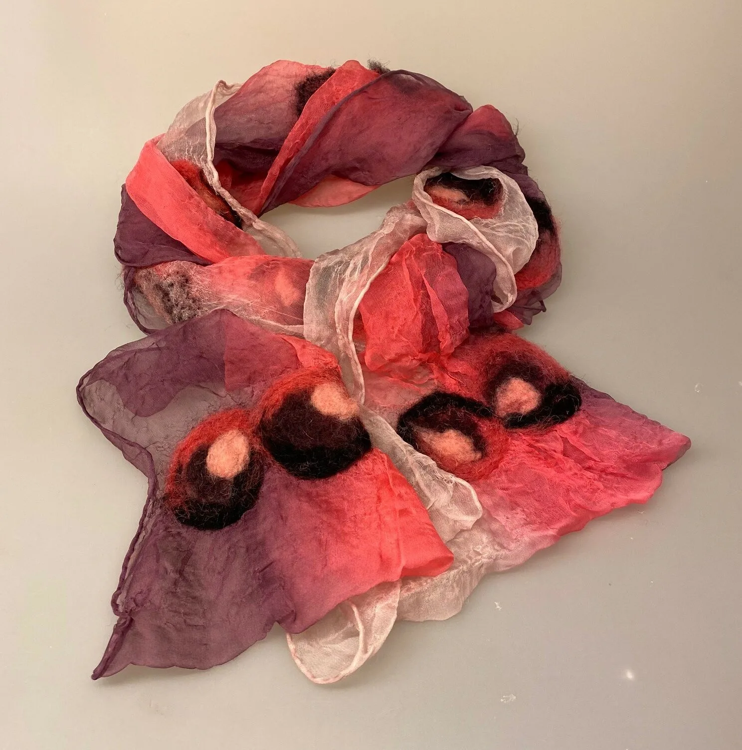 Tørklæde 1501 Silkechiffon med Filt – Cerise