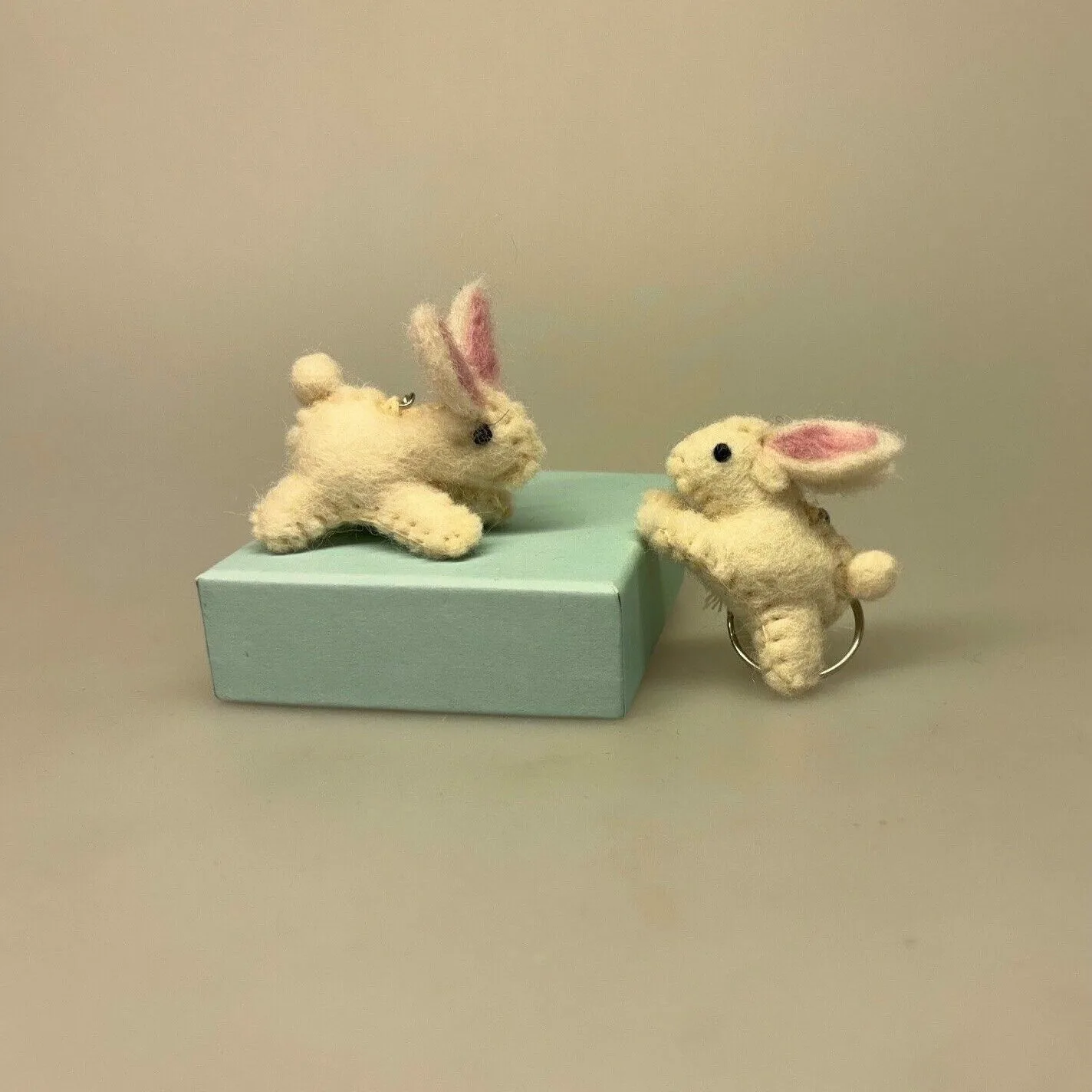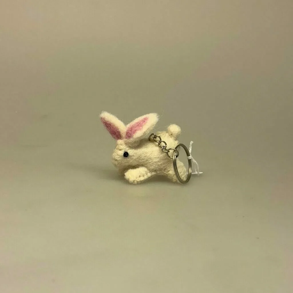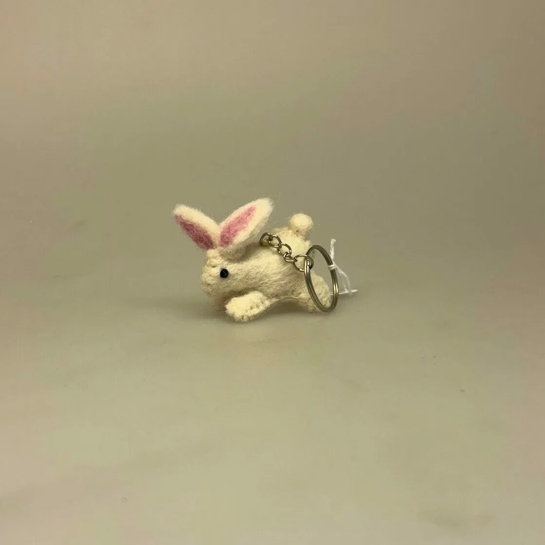 Herlig nøglering med kanin, håndlavet i uld filt.