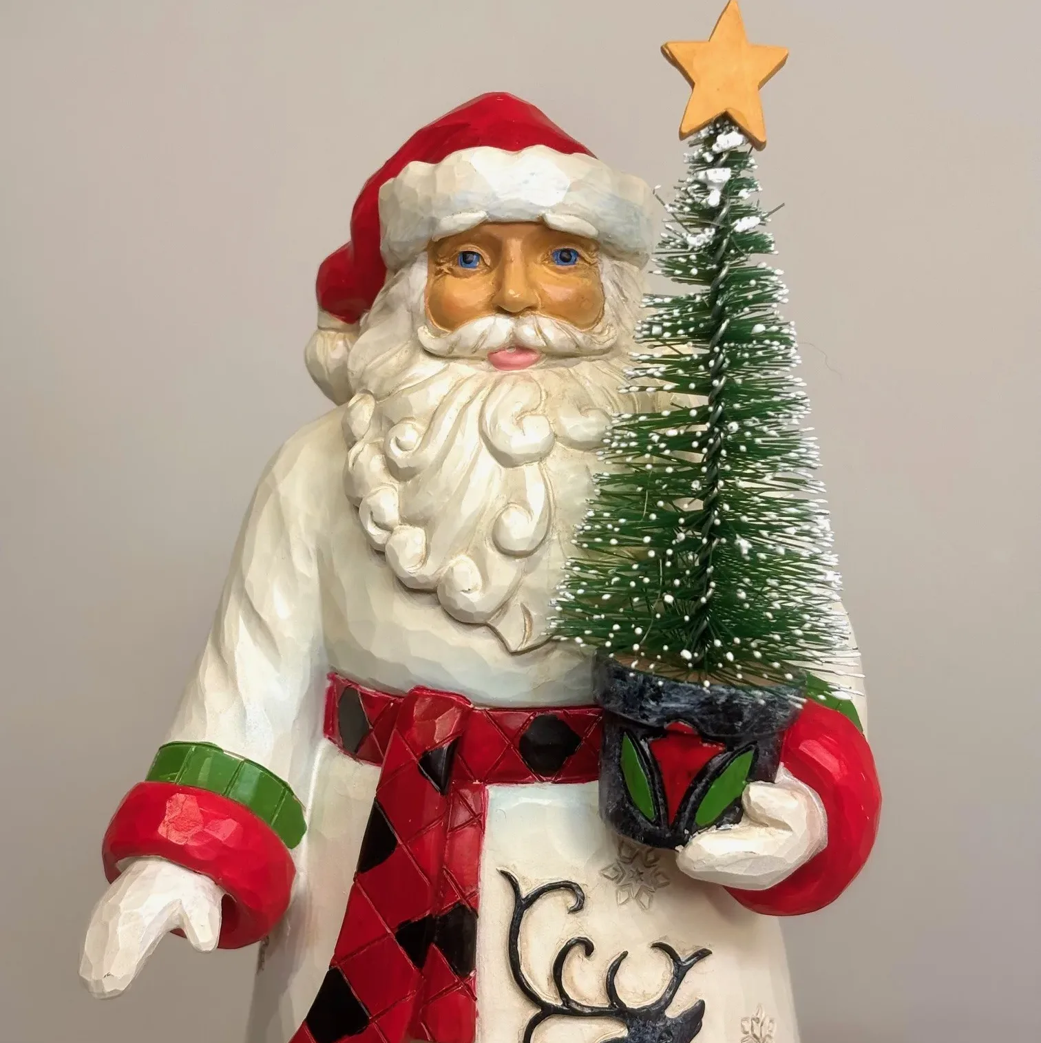 Fantastisk Julemandsfigur af Jim Shore – en skotsk santa med træ.