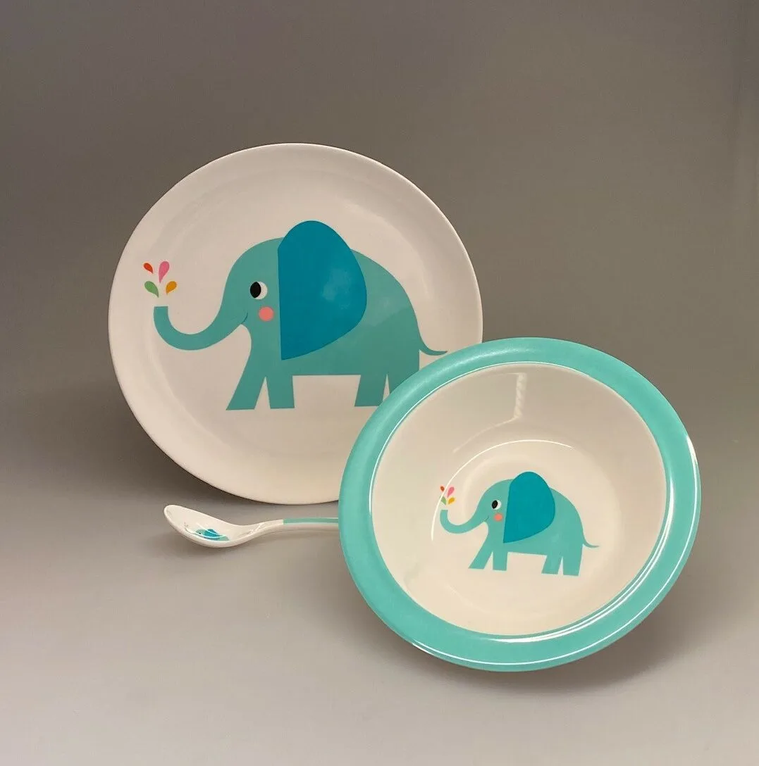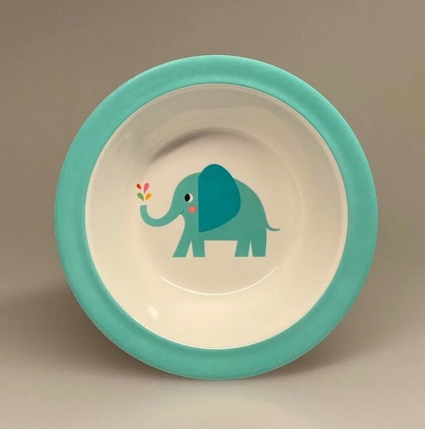 Dyb tallerken i melamin med kær lille elefant.