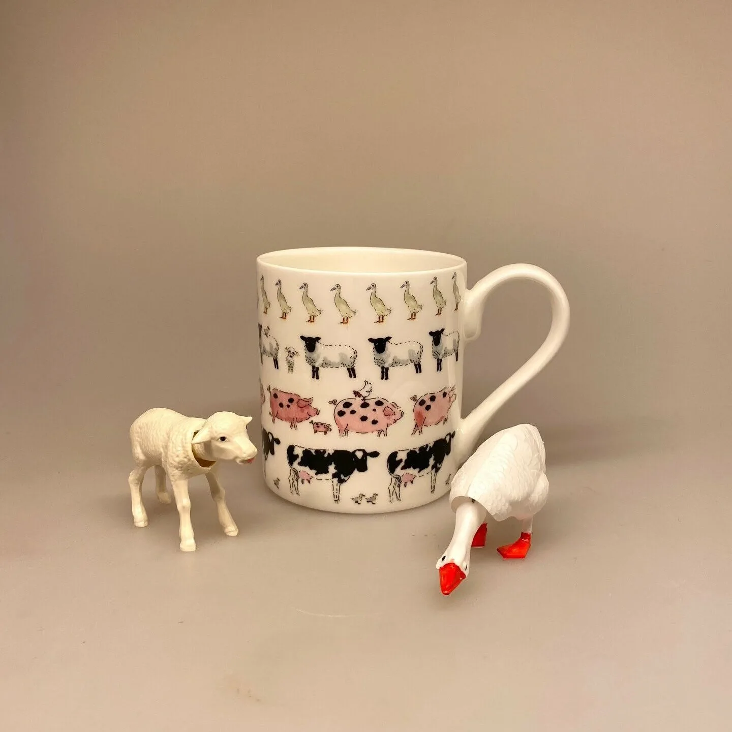 Et smukt krus af delikat porcelæn, med et smukt og personligt motiv gør fornøjelsen ved at nyde en god kop kaffe, kakao eller te endnu større. Kruset her er hvidt og dekoreret med forskellige små får på rad og række. Der er hvide får med krumme horn, hvide får med sorte ben og hoveder, og får med sorte pletter. Indeni kruset står med lysegråt: Baa .. altså mææh!