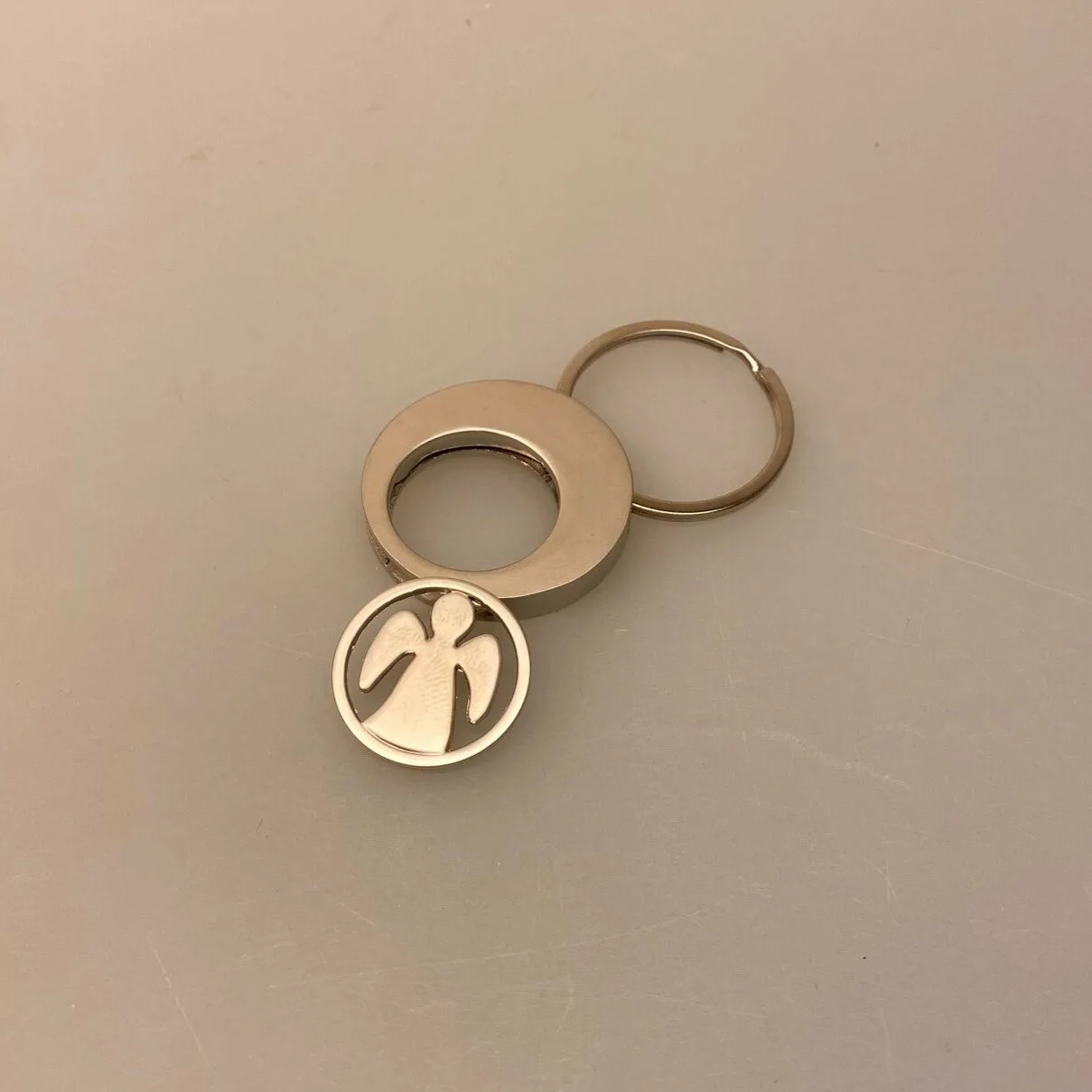 Nøglering med aftagelig engel der passer i en indkøbsvogn
