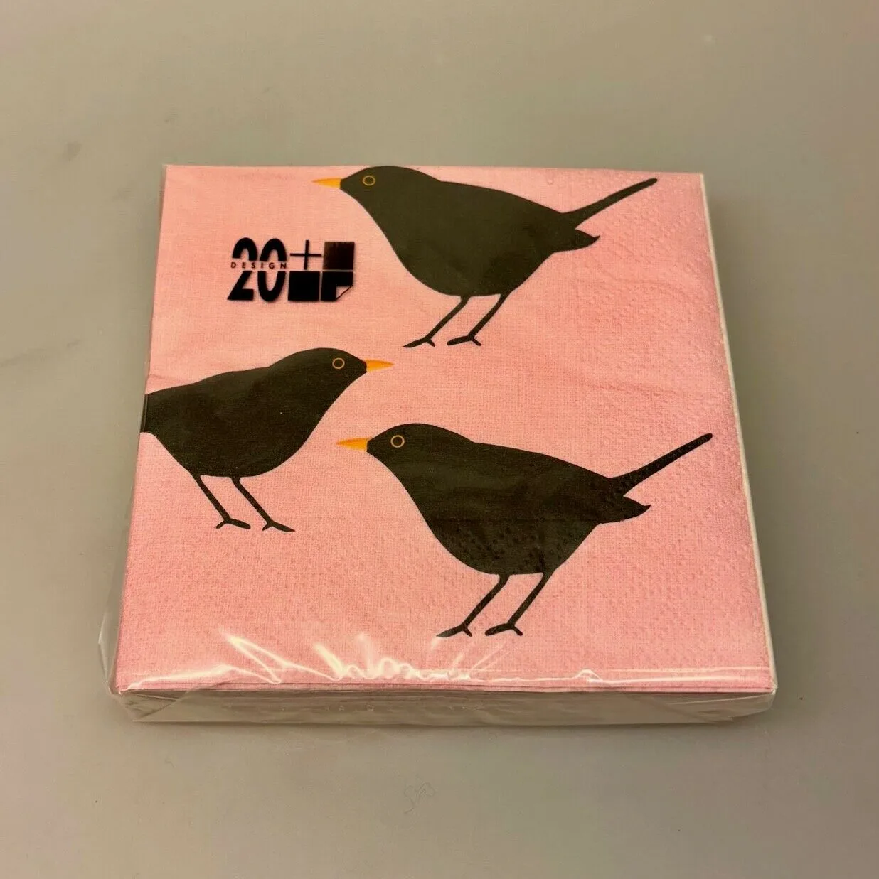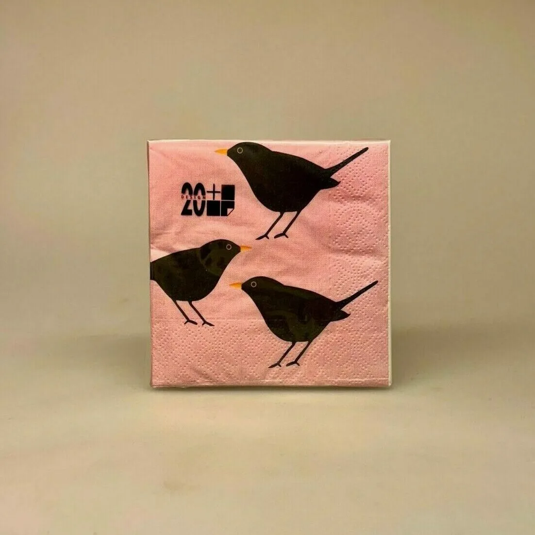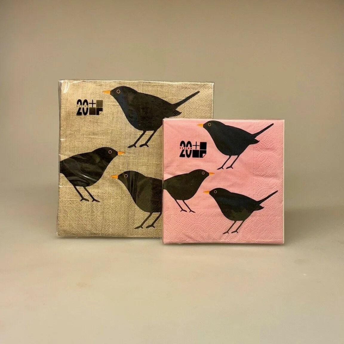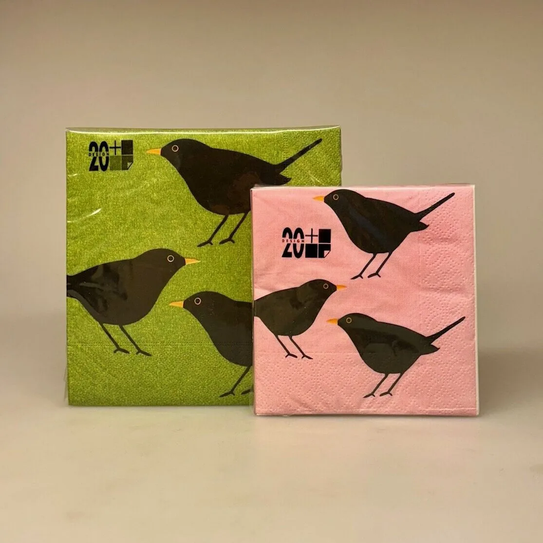 Servietterne er kulørte og danner en flot baggrund de til søde sorte fugle med gule næb.
