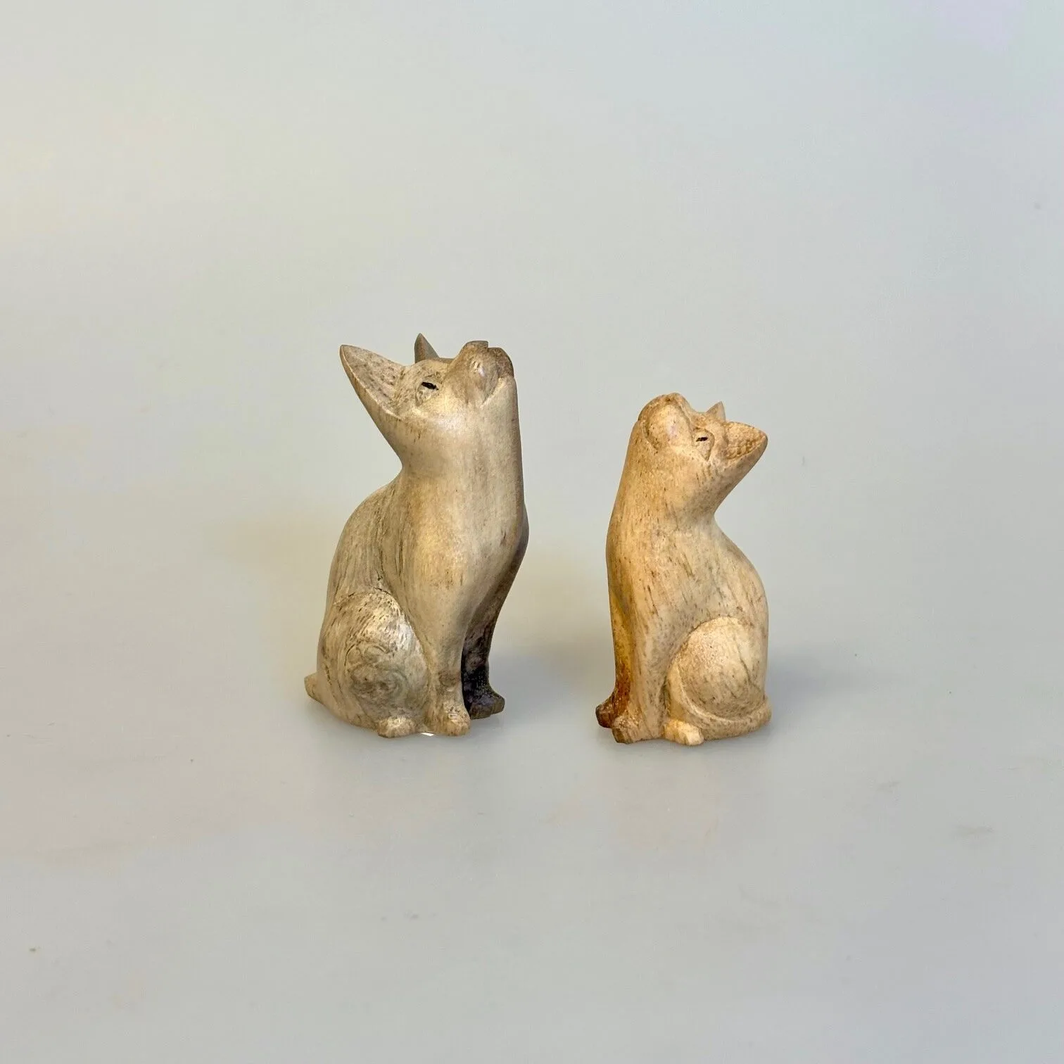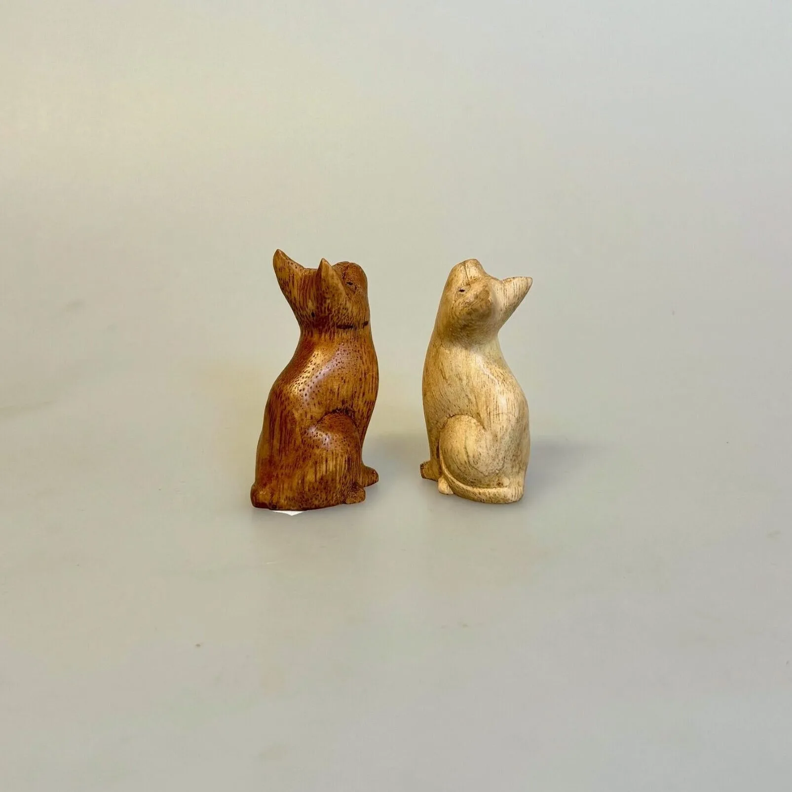 Katte håndsnittet af træ, rigtig flot håndarbejde, der – sammen variationen i træet – gør at hver enkelt figur er unik, selv om de hedder det samme.