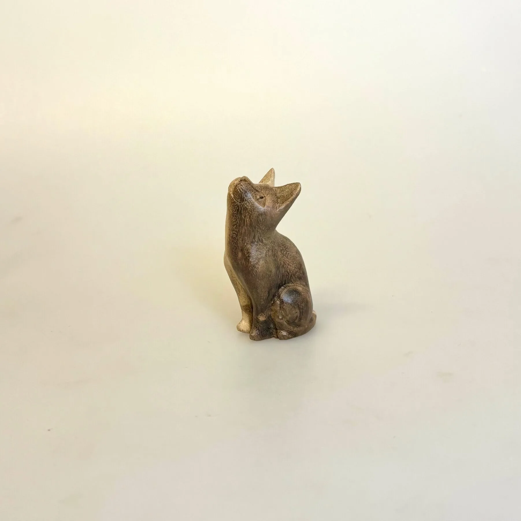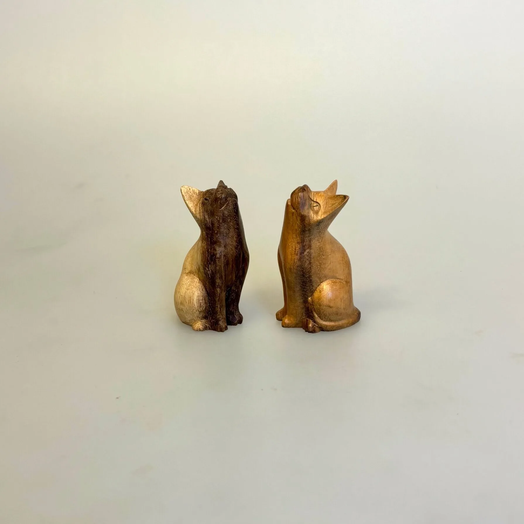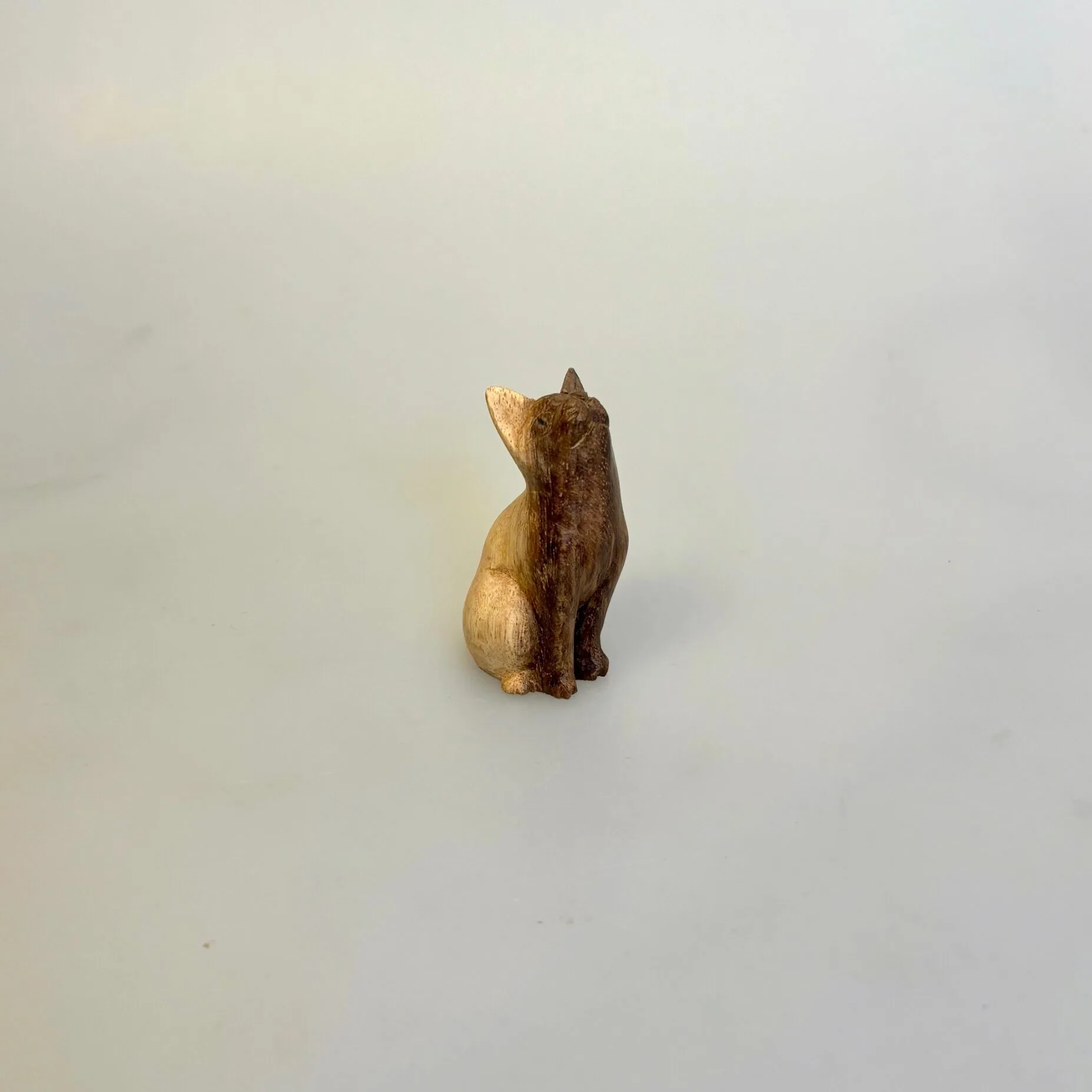 Kat Håndskåret af Træ – Kigger Op XXS Grå