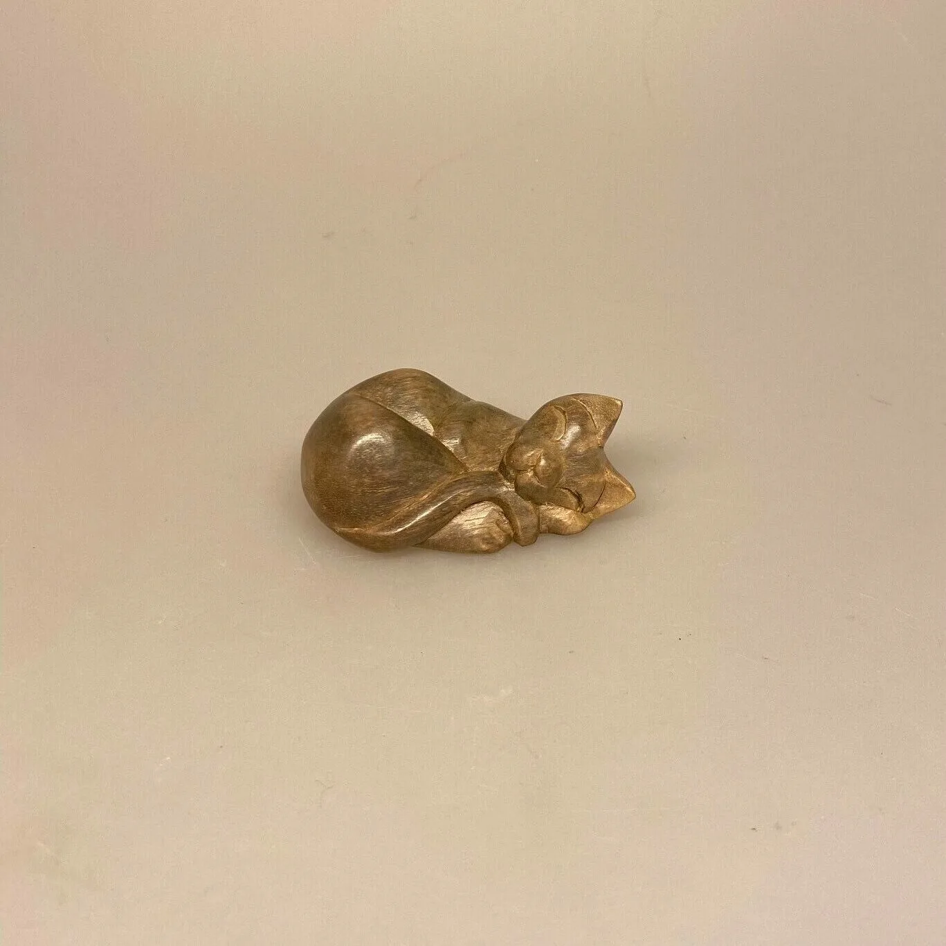 Fine håndskårne figurer i træ af katte, der ligger og sover. Flot håndarbejde, der gør at hver enkelt er en smule forskellig fra de andre, dette sammenholdt med hvert stykke træs individuelle farve og mønster, betyder at hver figur er unik. Stabil kvalitet.