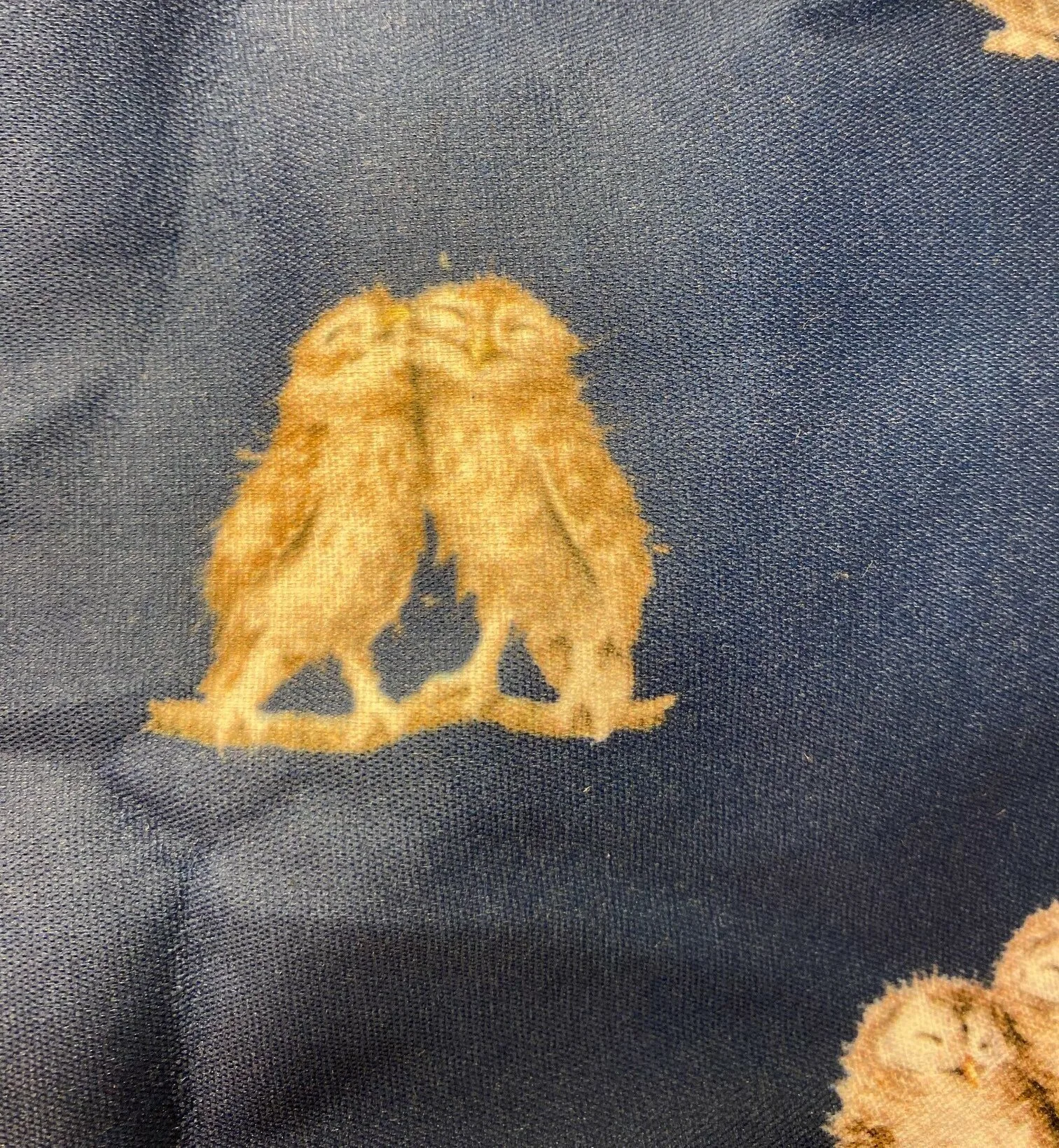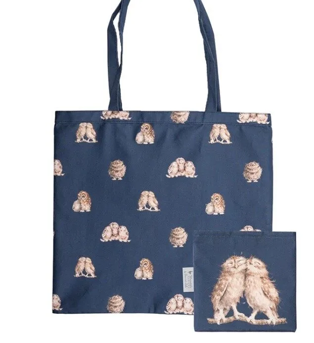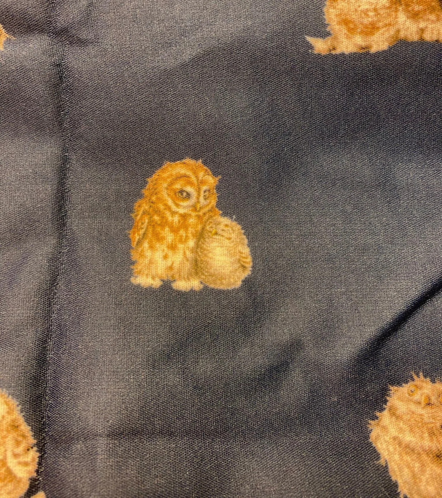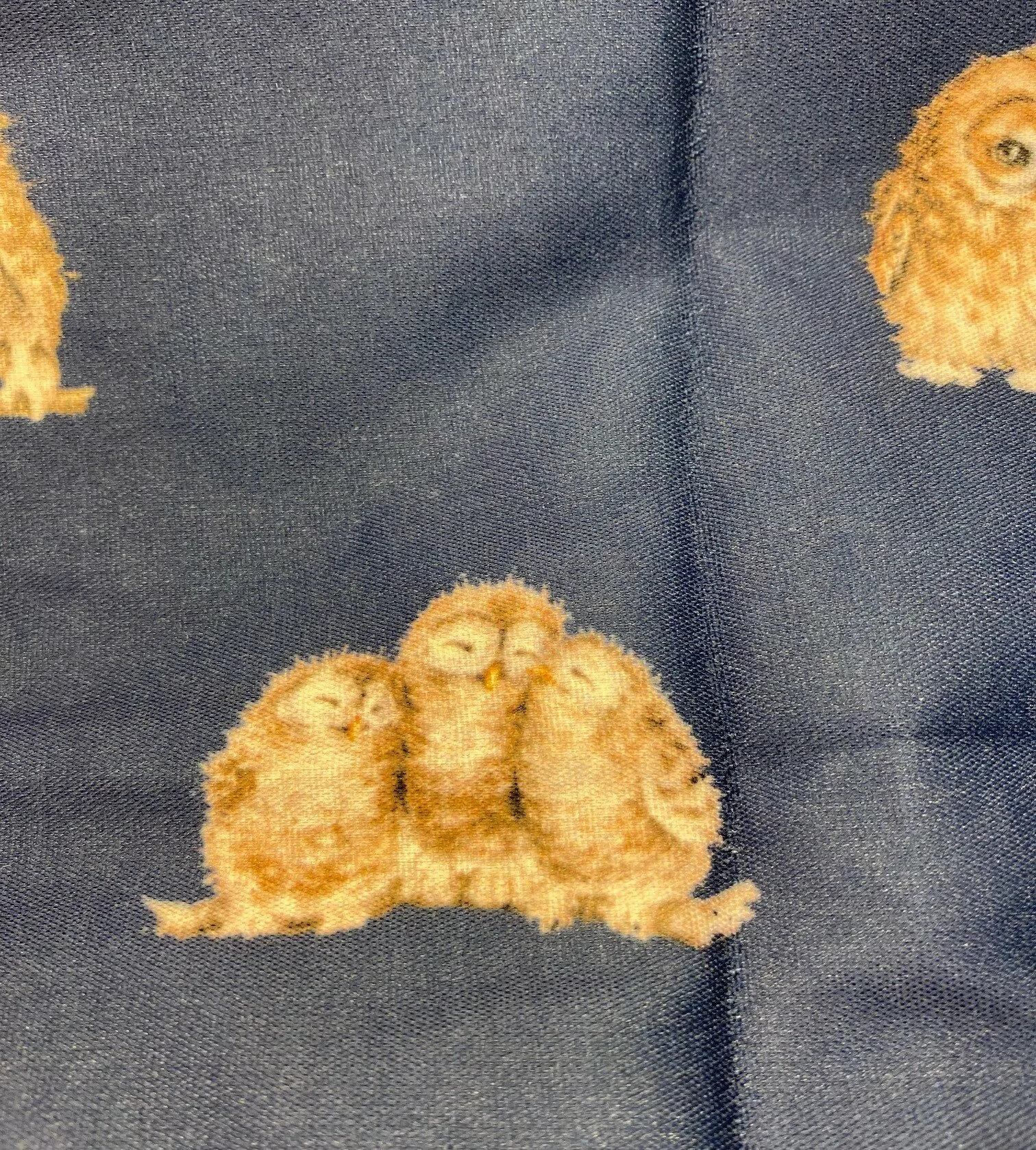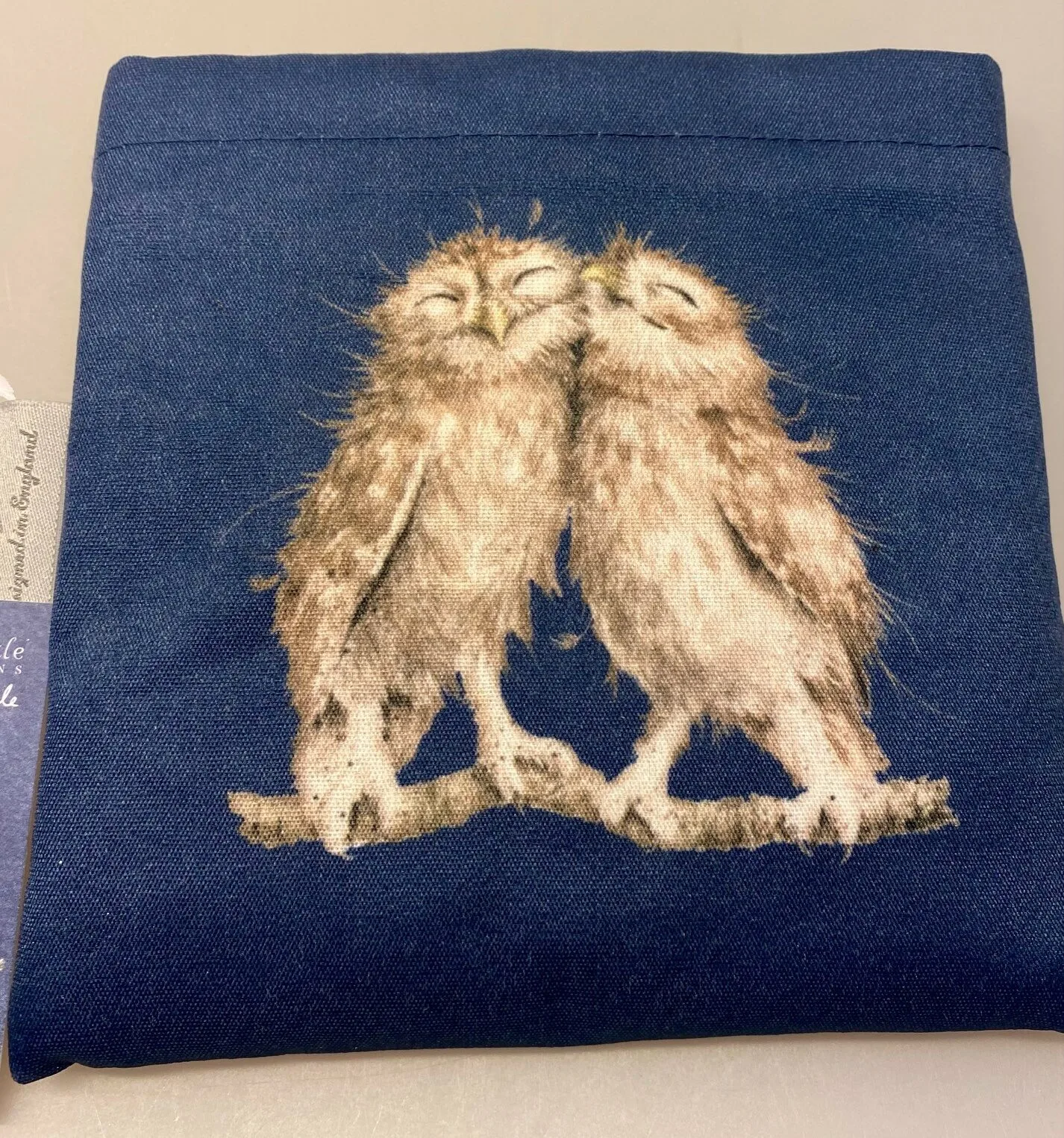 Nettet er mørkeblåt med et fint klart tryk af små søde ugler. Nettet er dekoreret med tryk af mindre figurer, mens lomme-etuiet har et større motiv af to ugler, der sidder sammen.