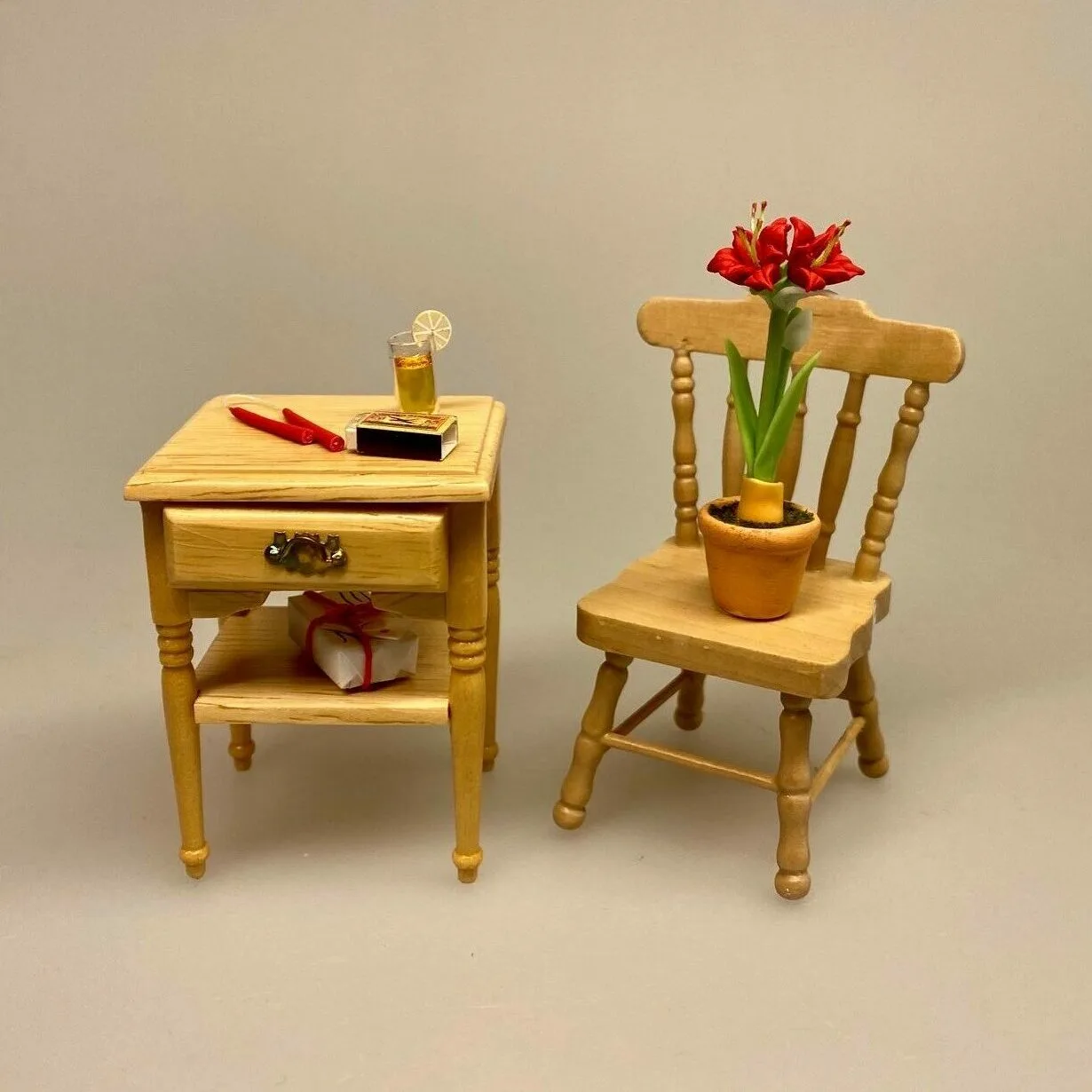 Smukt lille bord med skuffe og hylde 1:12