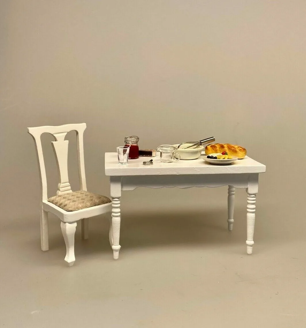 Miniature stolen er elegant i dukkehusets stue, spisestue eller soveværelse. Den er også anvendelig i andre rum og sammenhænge.