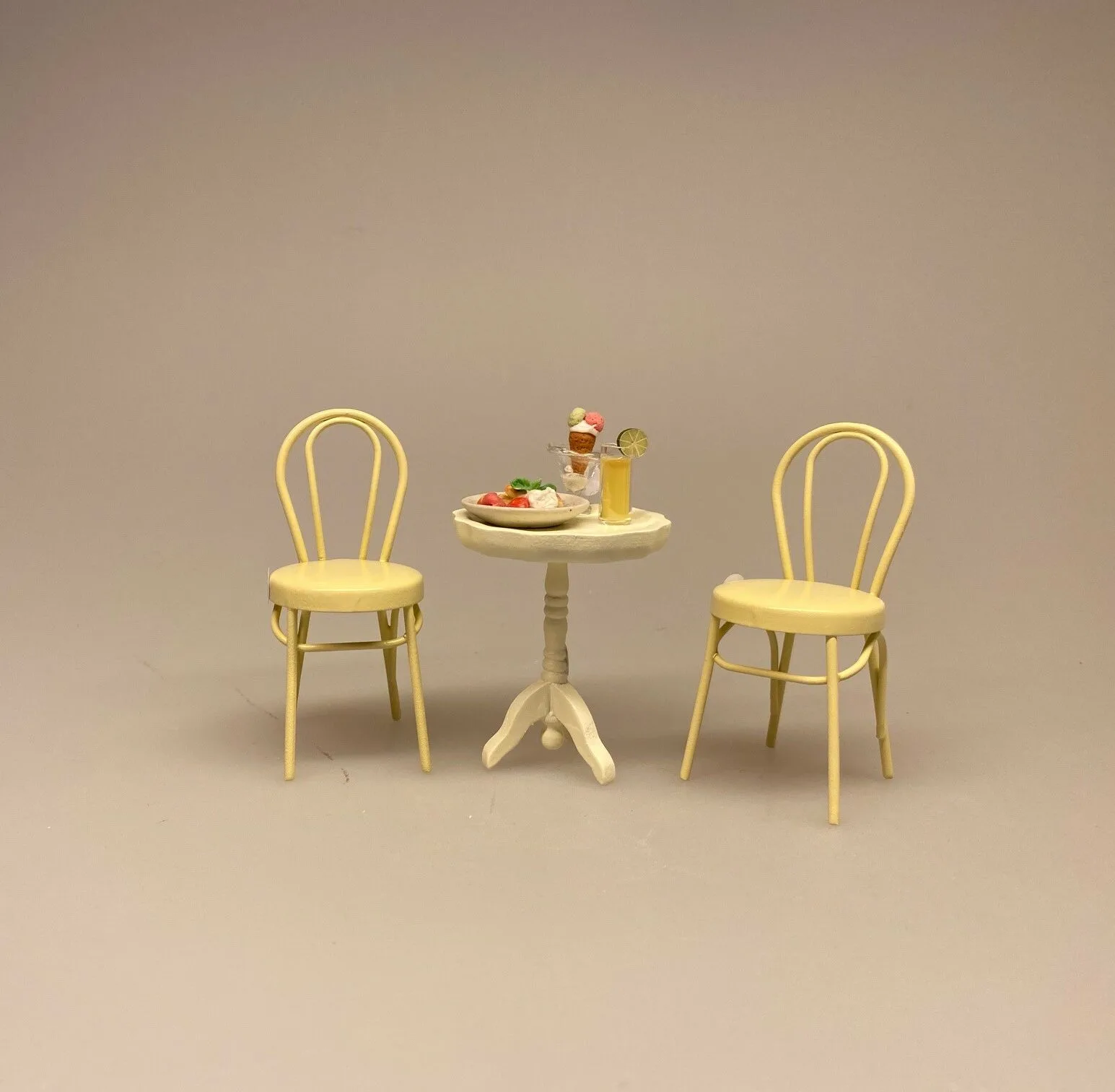 Miniature stolen kan anbringes i alle dukkehusets rum. Stolen er fin som køkkenstol eller spisebordsstol. Den fylder ikke meget som soveværelsesstol eller kontorstol. Stolen er også skøn som caféstol i den lille café, bager eller restaurant. Den kan sættes sammen med det lille runde bord i creme.