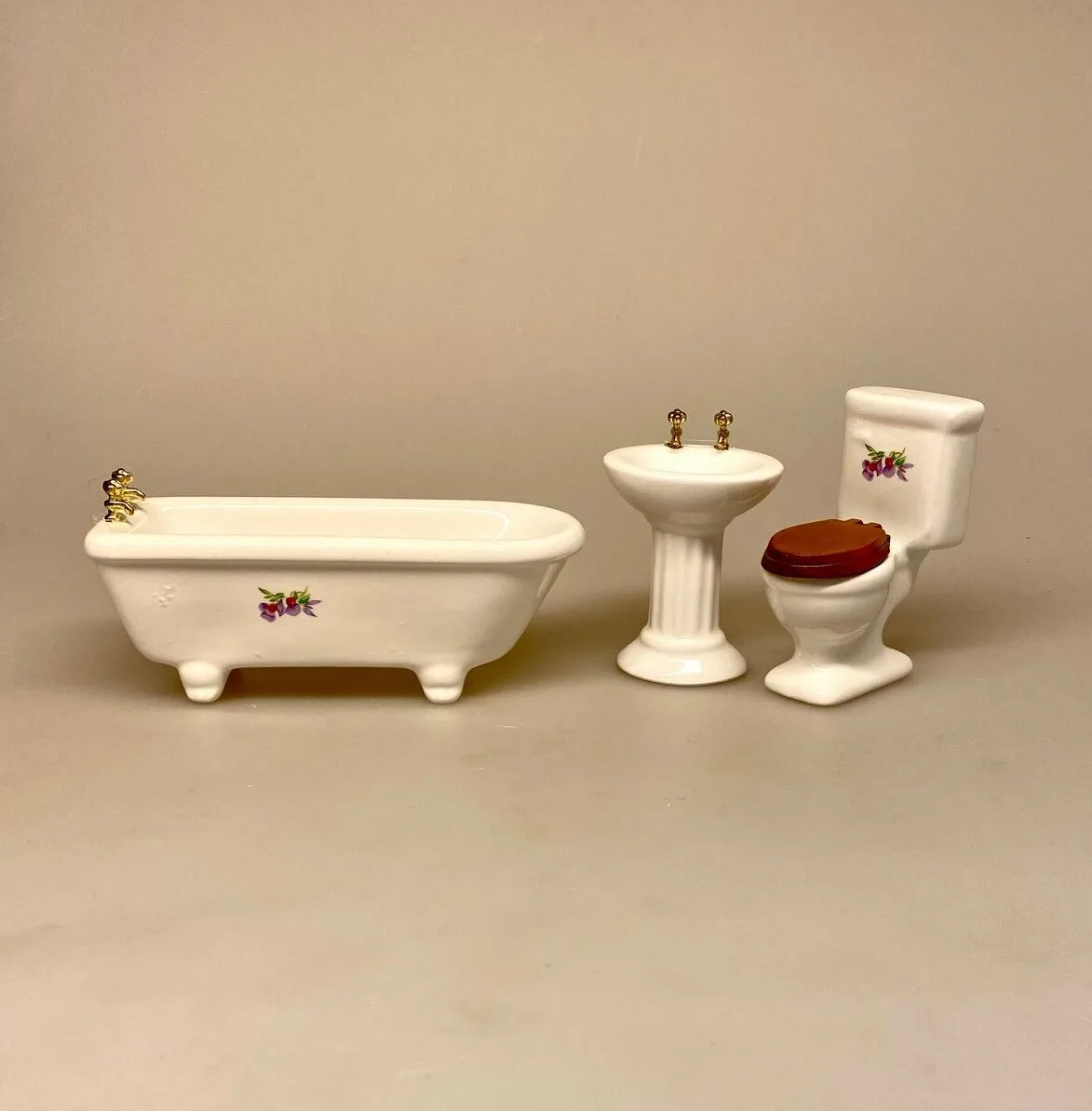 Miniature Badeværelse i Porcelæn Lilla Blomst