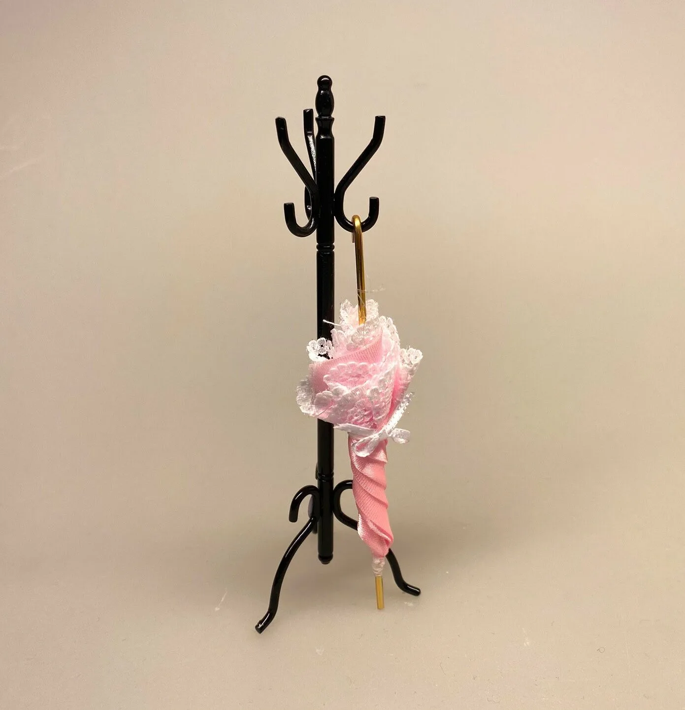 Miniature Parasol Rosa med Blonde & Sløjfe