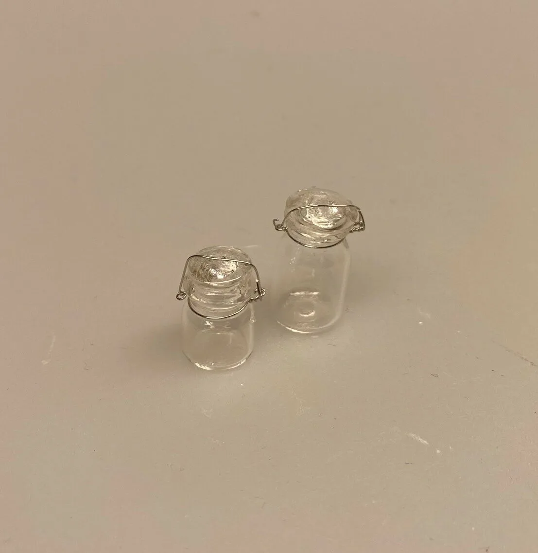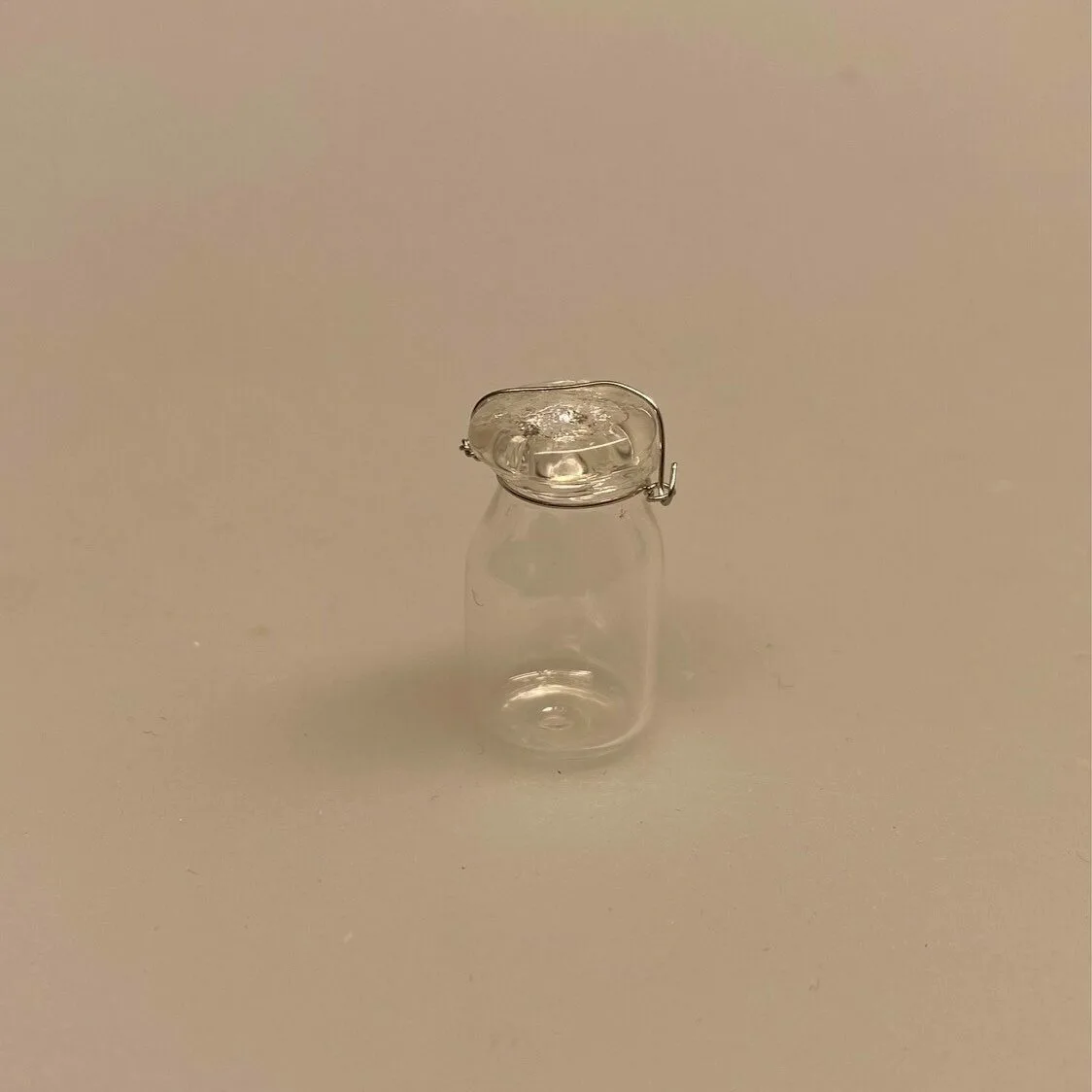 Flot og dekorativt glas med låg i dukkestørrelse. Glaskrukken er mundblæst og låget kan tages af, så man kan fylde glasset med noget efter eget valg. Sødt i dukkehusets køkken.