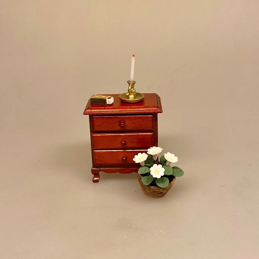 En god detalje på et bord sammen med tændstikæsken – i dukkehusets stue, på et lille bord eller på kaminen.