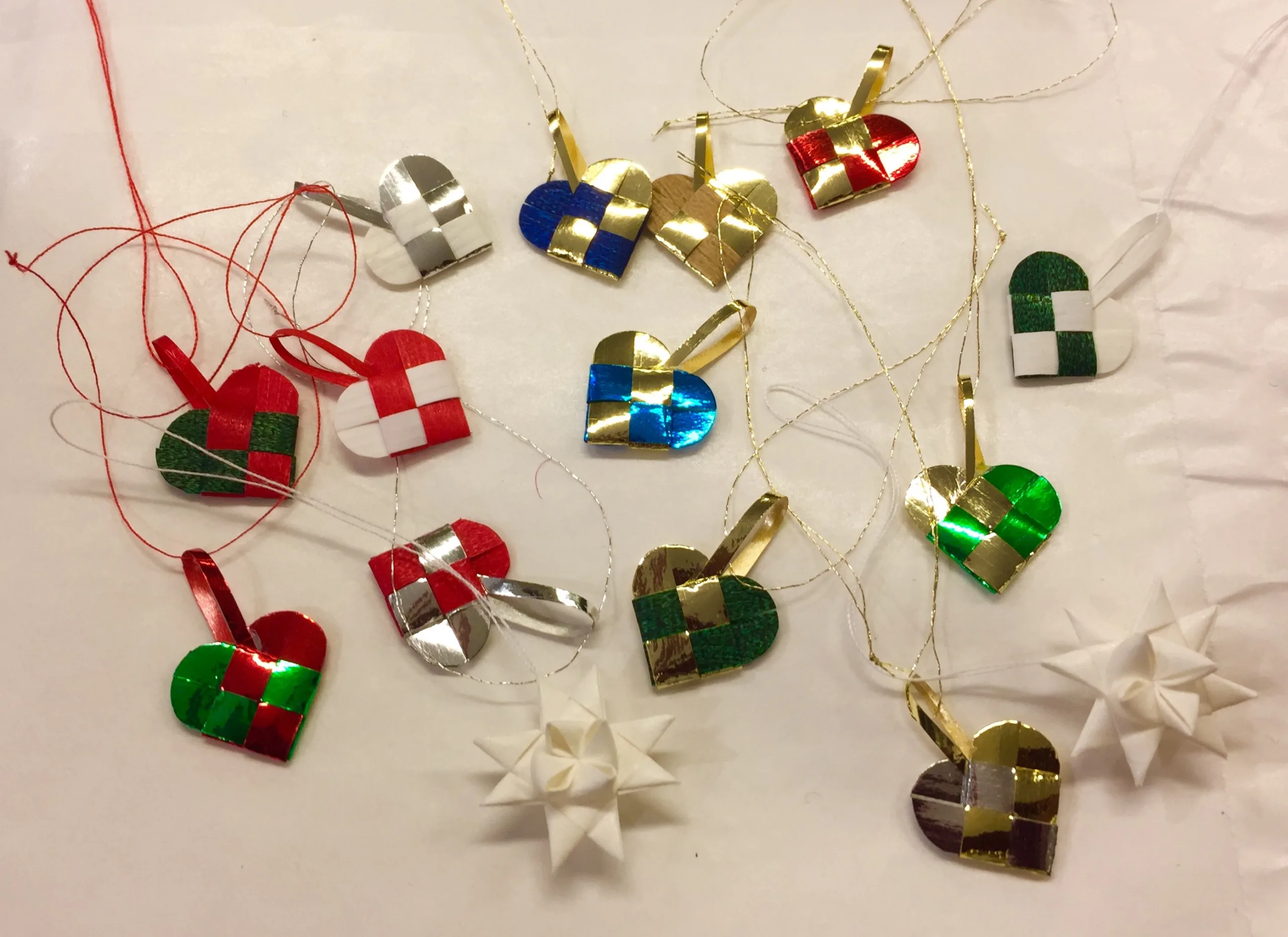 Der fås endvidere også en pakke med alle 10 forskellige farver Miniature Julepynt – 10 Flettede Julehjerter Kulørte