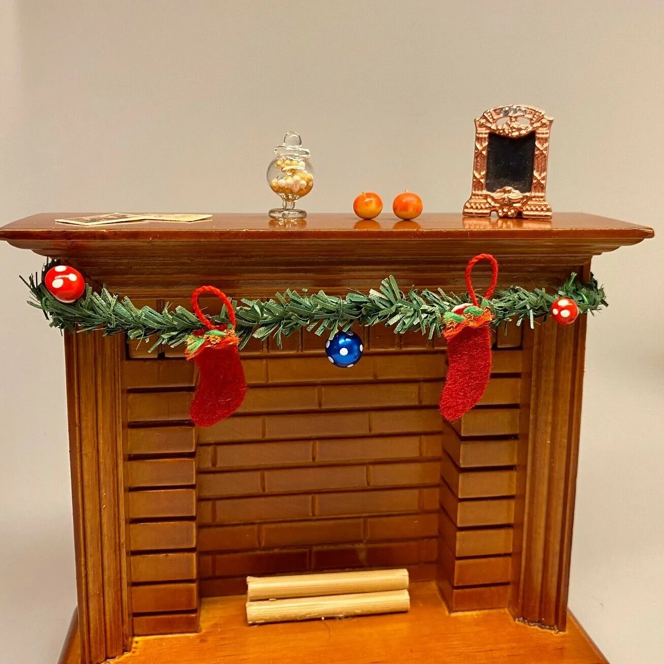 En god detalje sammen med juletræet i dukkehusets stue, på et lille bord eller i en kurv eller kuffert fuld af julepynt.