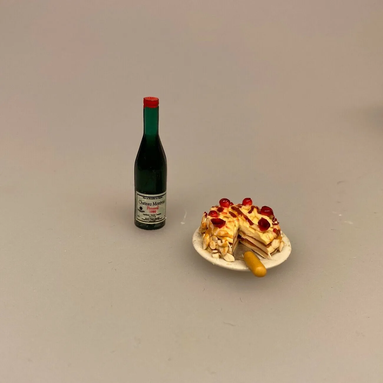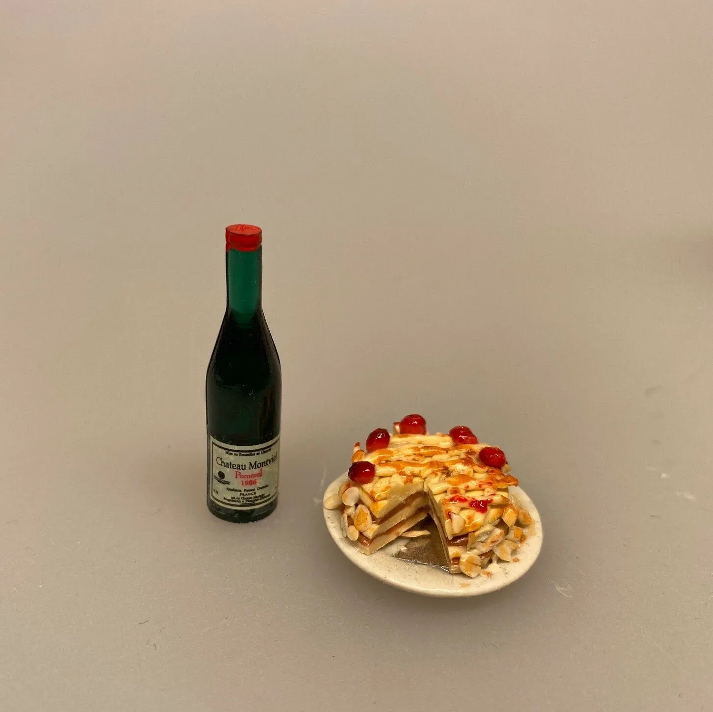 Miniature Lagkage med mandler og cocktailbær 1:12