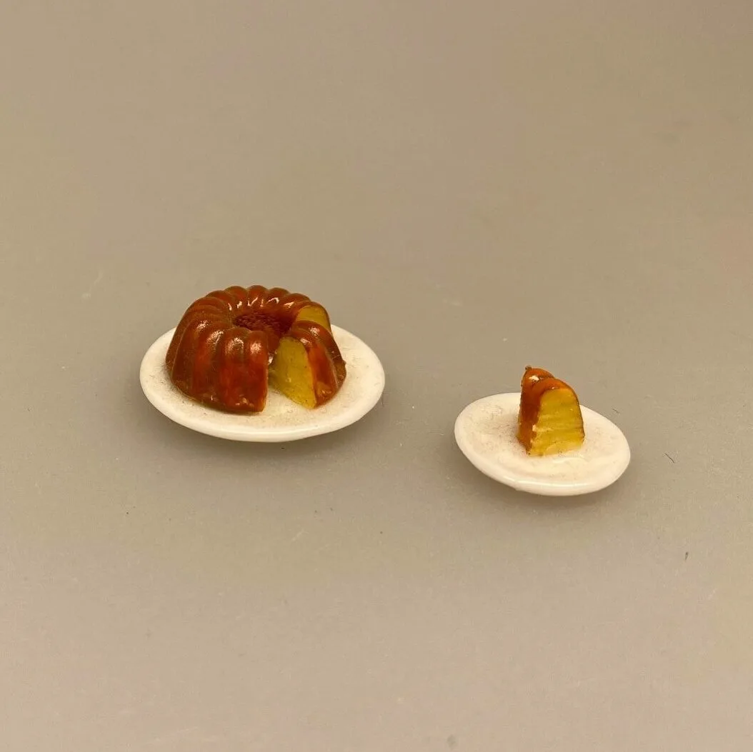 Fin lille formkage med ekstra stykke på tallerken 1:12