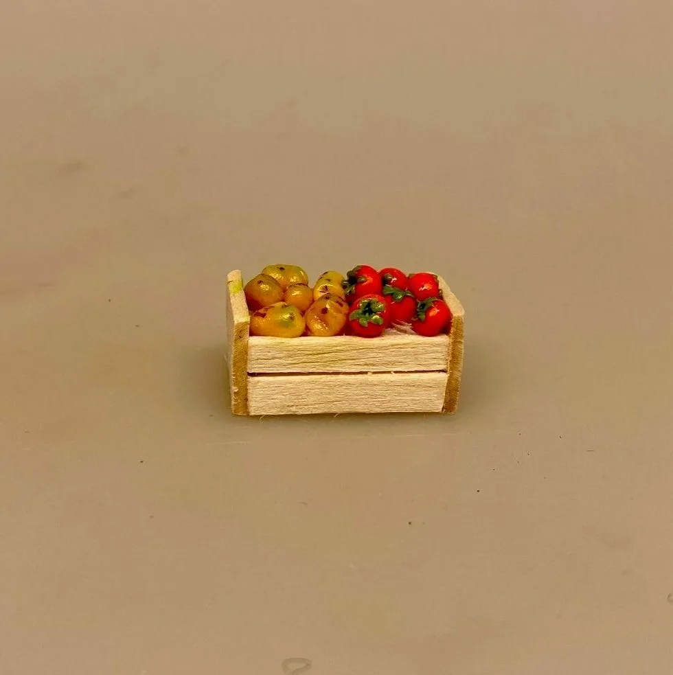 Minature Grøntsagskasse med kartofler og tomater 1:12