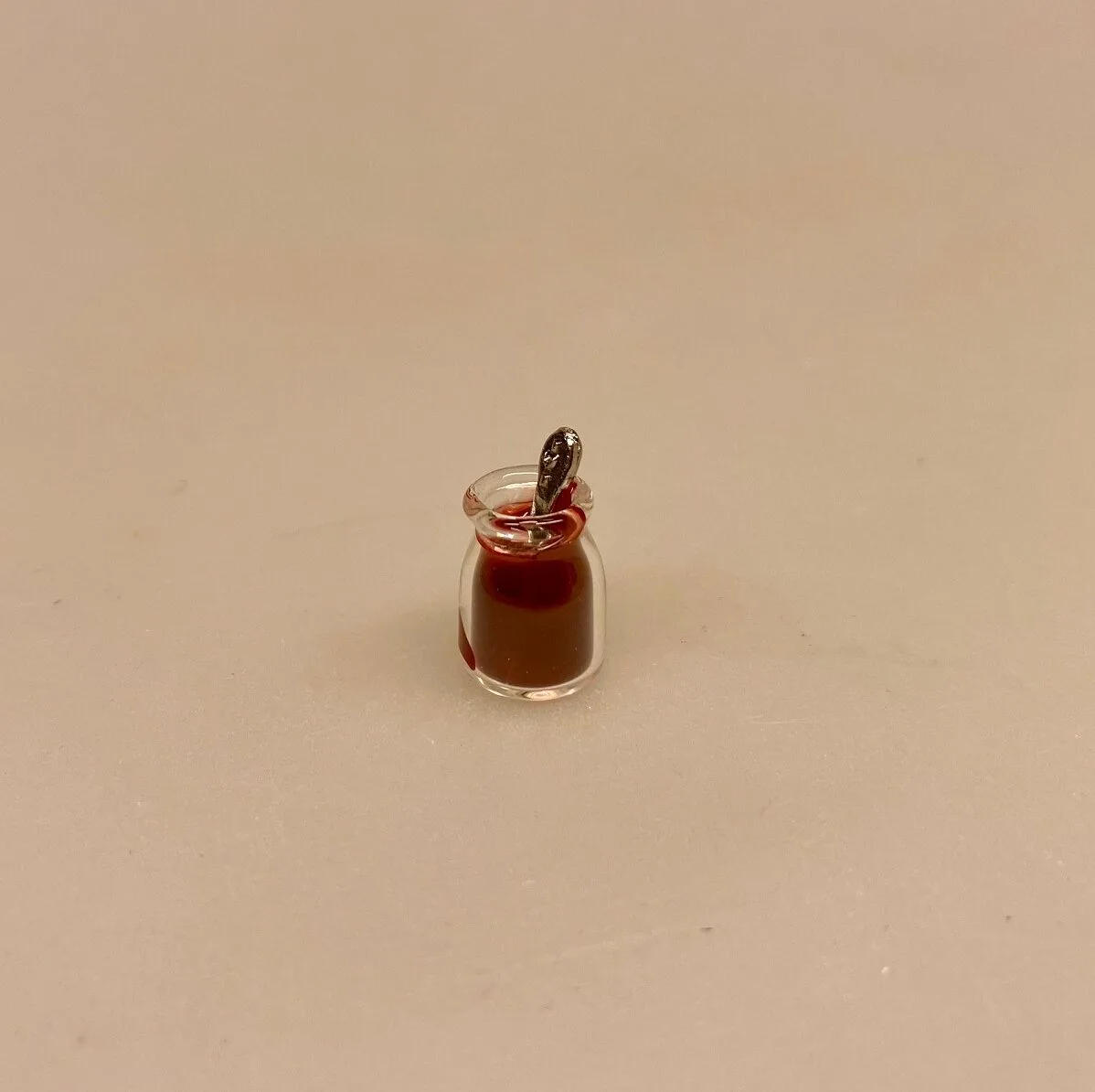 Miniature glas syltetøj med ske 1:12