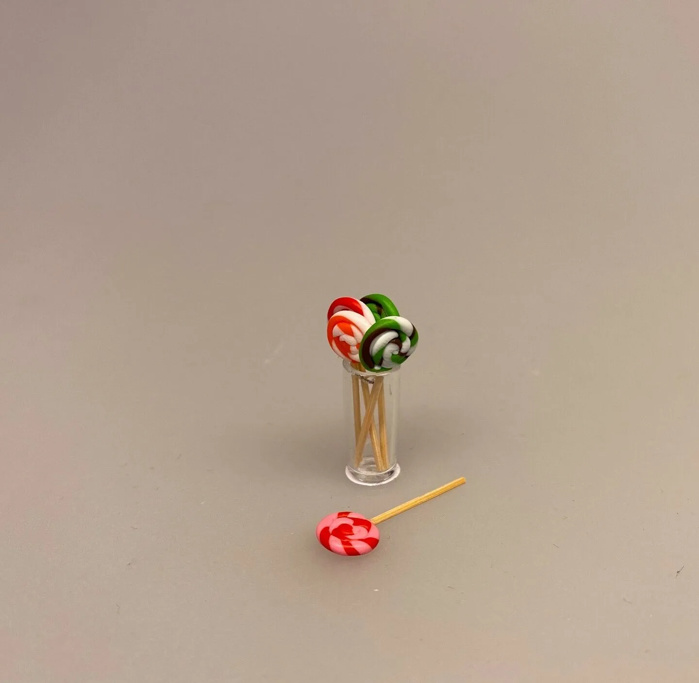 Skønne sæt med 3 runde bittesmå slikkepinde 1:12