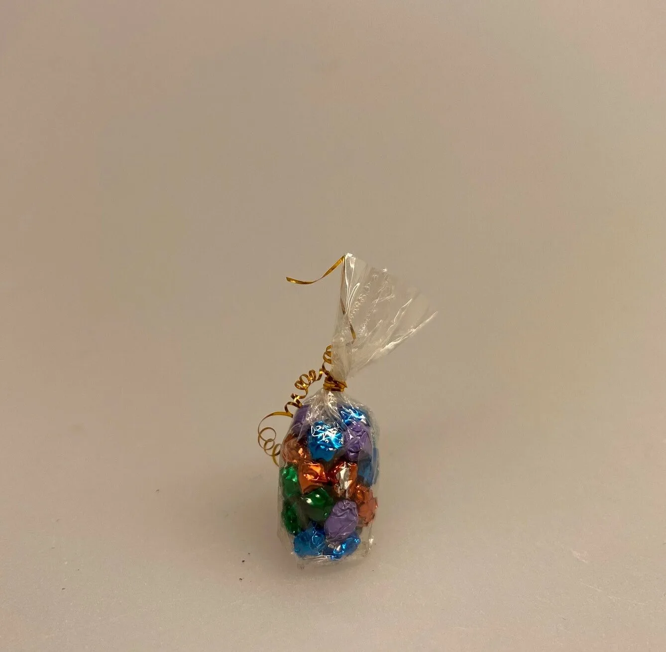 Herlige indpakkede dalere i pose. Lækre chokolader i ministørrelse indpakket i en kulørt metalfolie og fyldt i en klar cellofanpose, lukket af et tyndt guldbånd. Klassiske pebermynter, slik lavet i hånden. Flot håndarbejde.