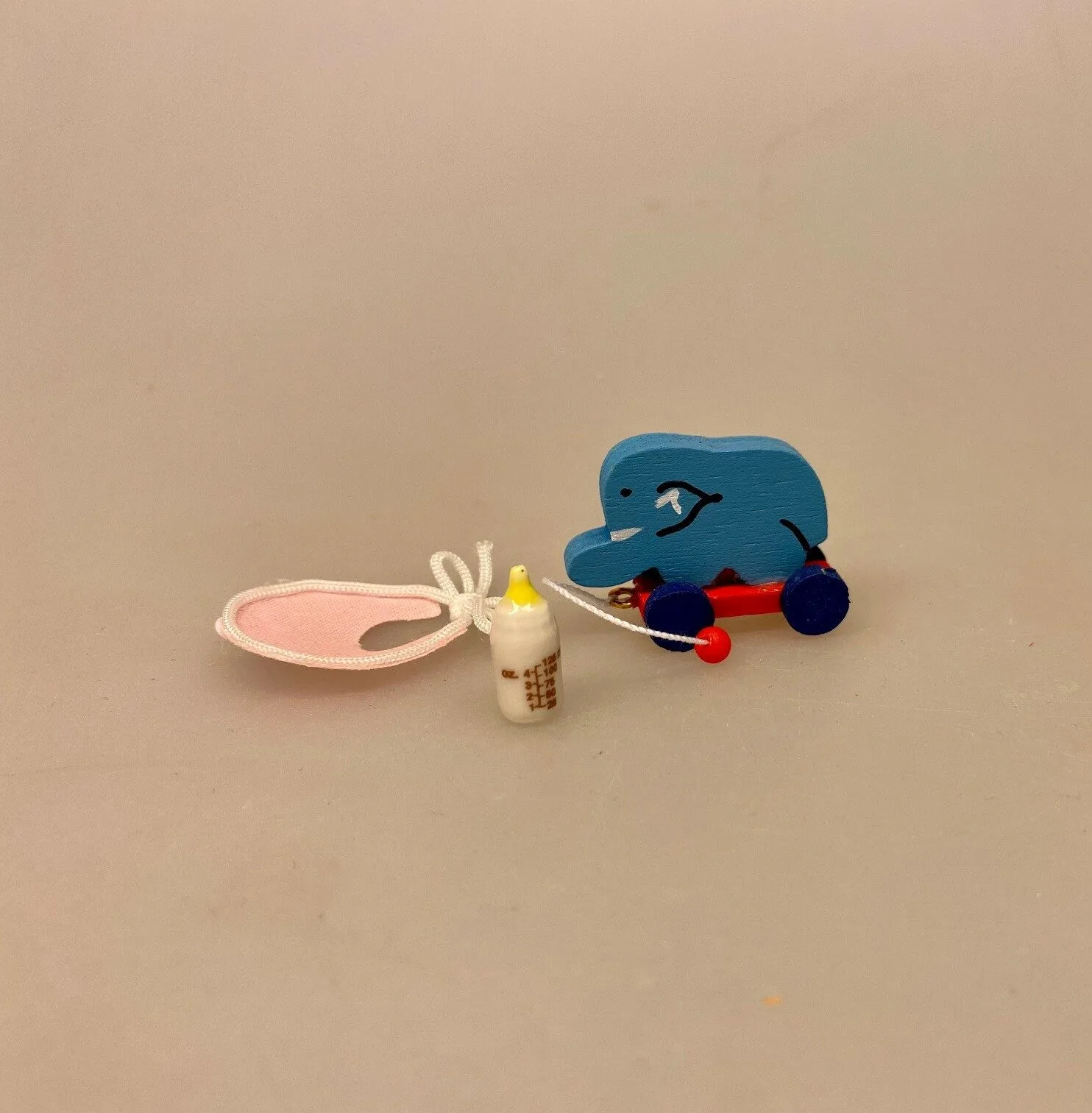 Sutteflasken er meget fin i dukkehuset. Den kan være til babyen ved spisebordet eller i børneværelset.