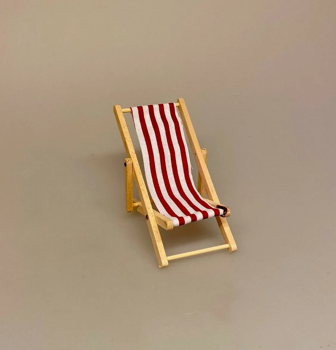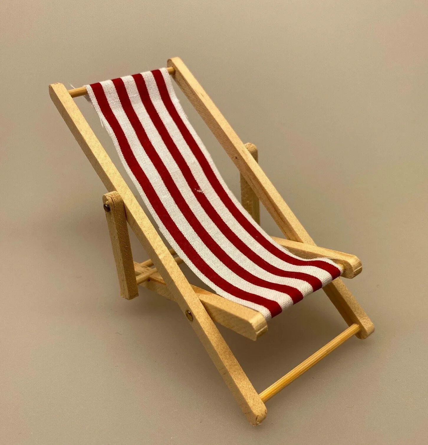 Liggestolen er sjov i dukkehusets have. Den kan styles med blomster, solhat, avis og læsebriller eller håndklæde, sodavand/dåseøl og badetøj.