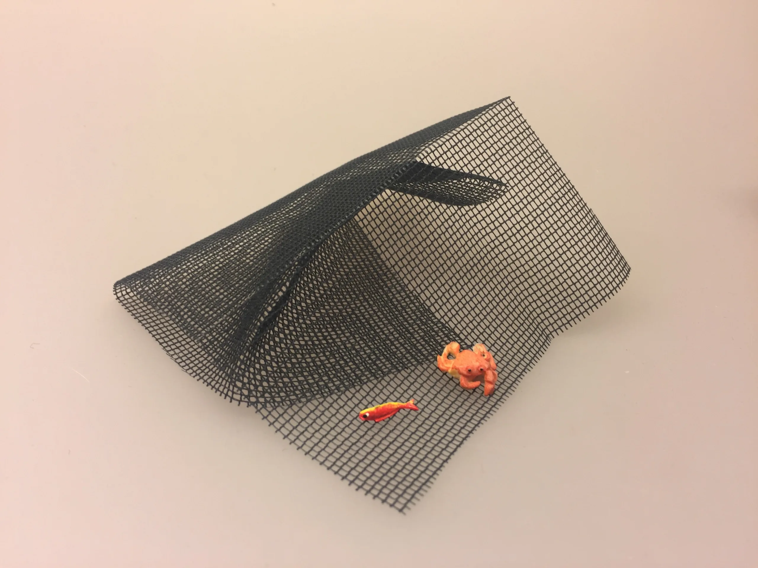 Fiskenettet bliver livagtigt med den lille fisk, krabberne og de små muslinger.