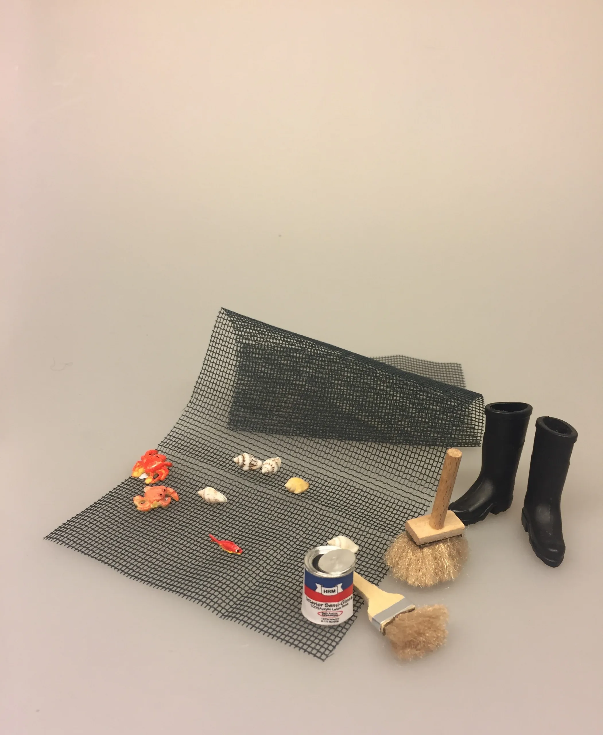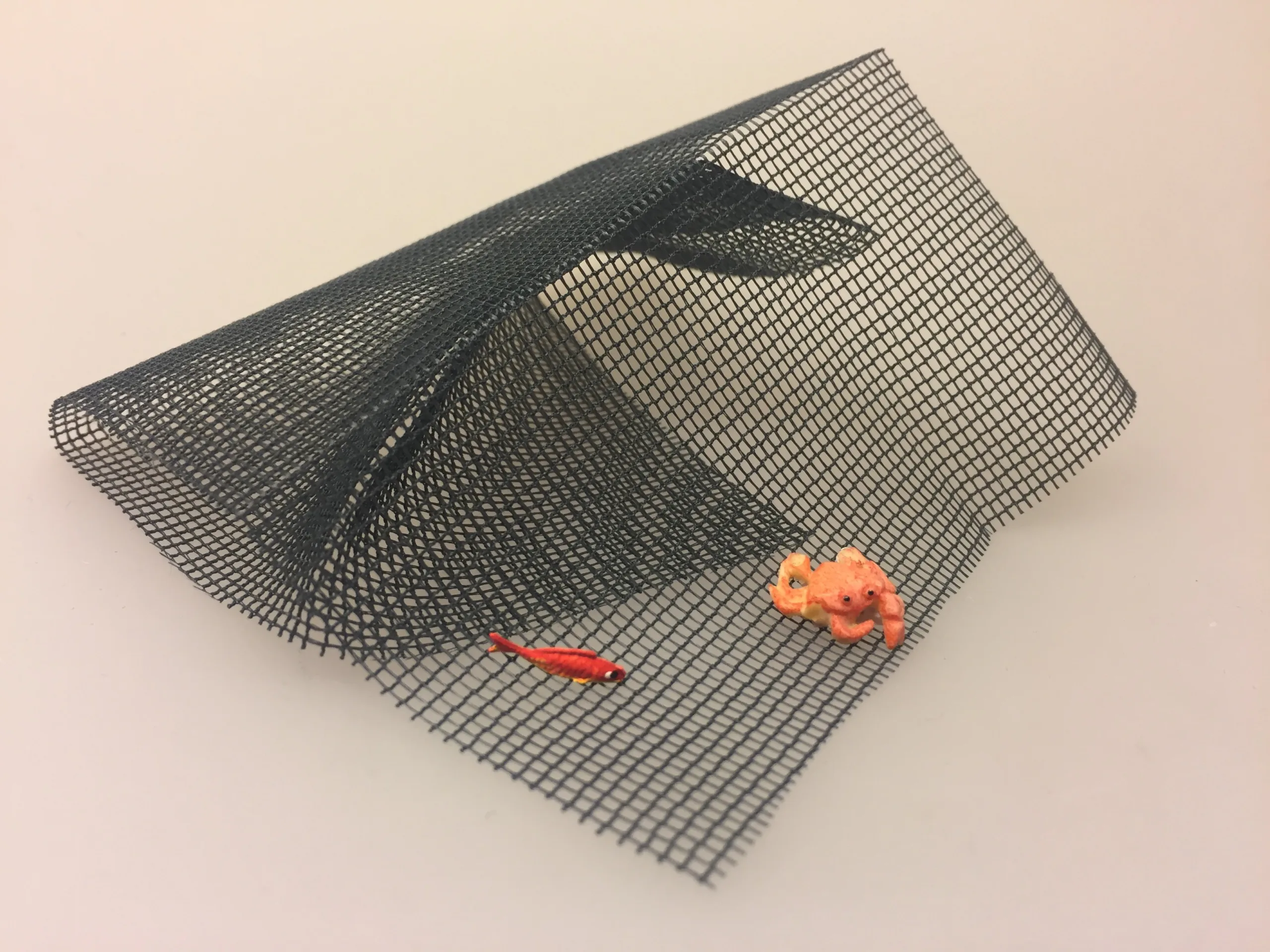 Fiskenettet her er virkelig finmasket. Fiskenettet er sort og udført af tynd blød nylon. Miniature nettet er oplagt til dukkehuset. Nettet kan anvendes til flere ting, men passer f.eks. perfekt som tilbehør til fiskegrejet og og strand tilbehøret.