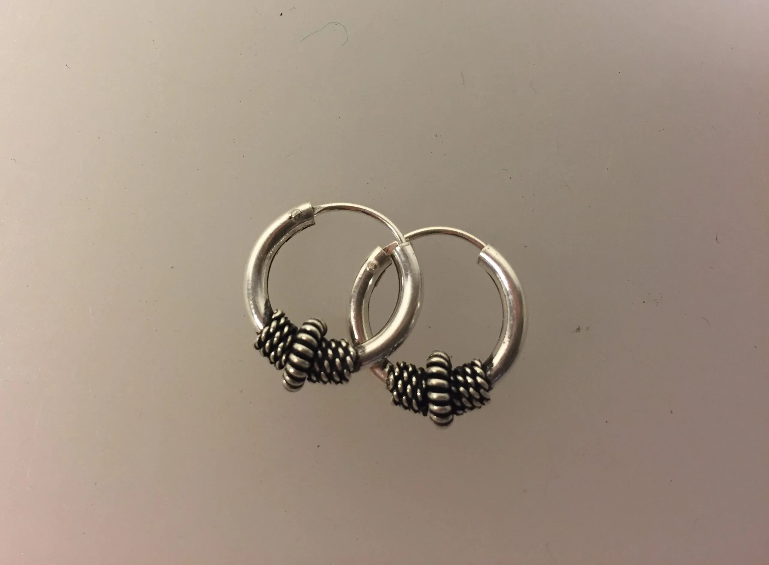 Creoler i sølv Ø 14 mm chunky med oxyderet sol og twistet snoning