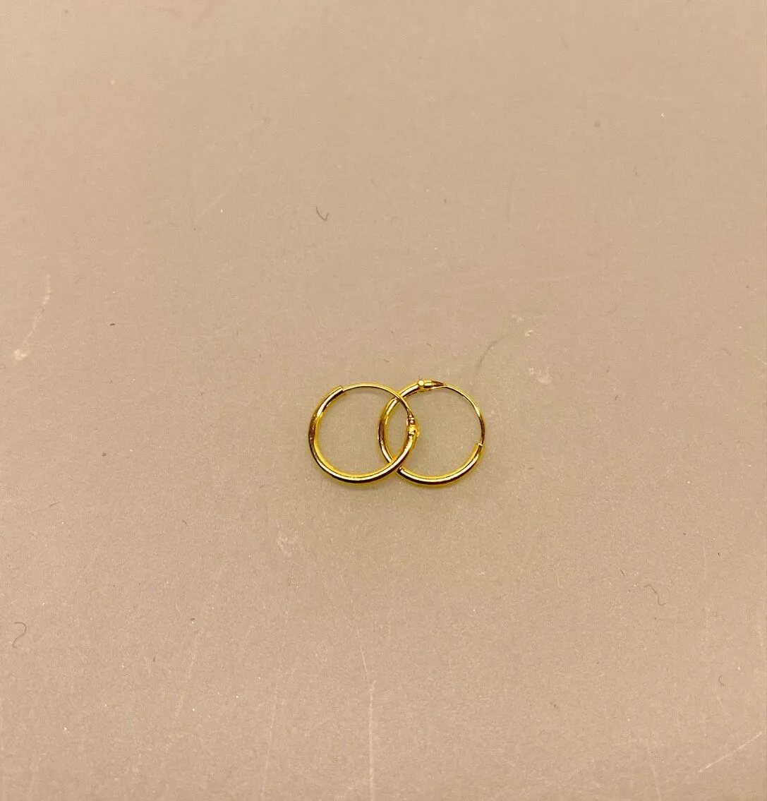 Fine små tynde “hoops” – runde creol øreringe i guld.