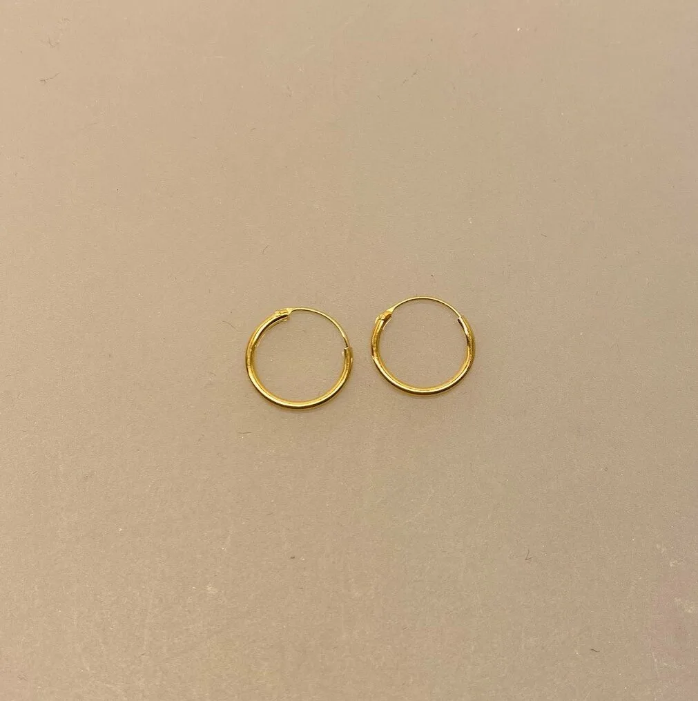 Creoler – Ø 12 mm Øreringe Forgyldt Sølv – Glatte Hoops 1 mm