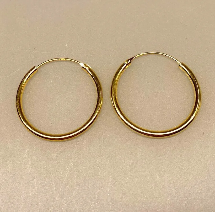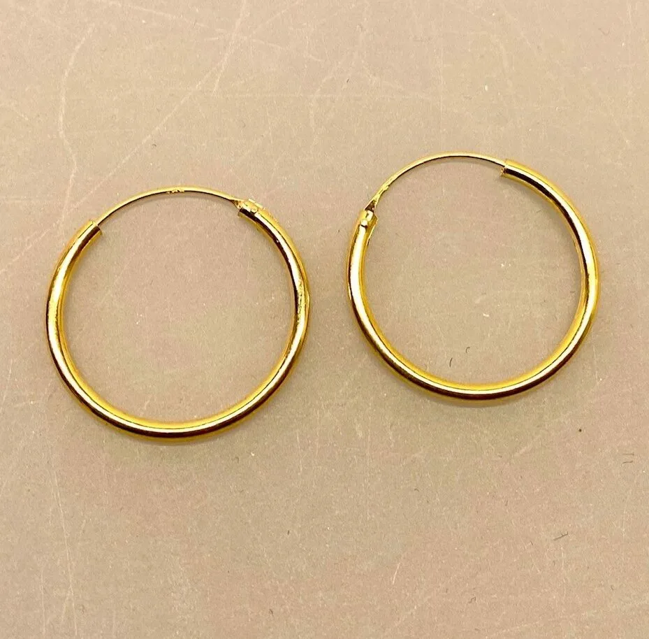 Flotte runde creol øreringe i forgyldt sterling sølv, ægte sterling sølv, der er guldbelagt.