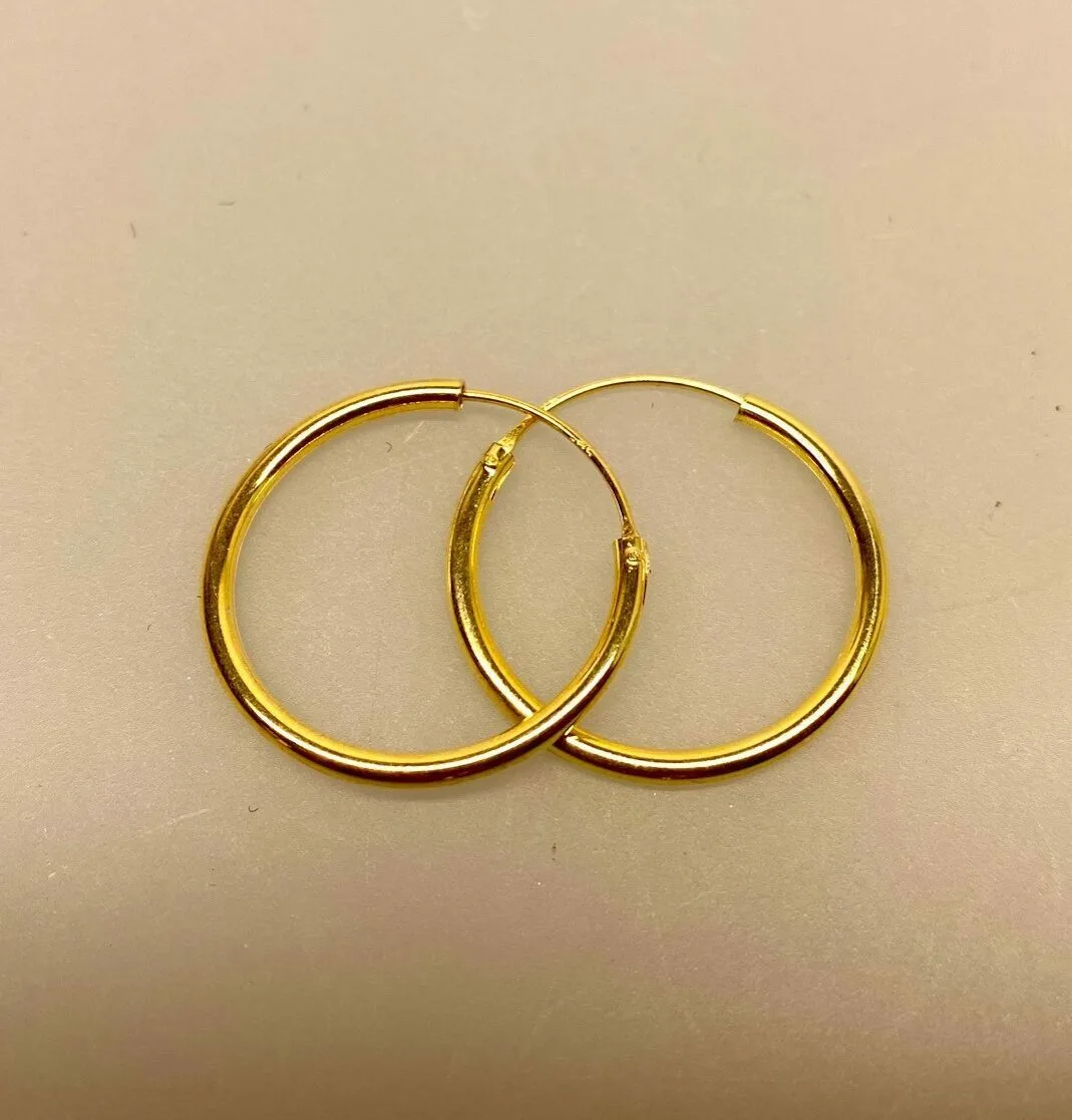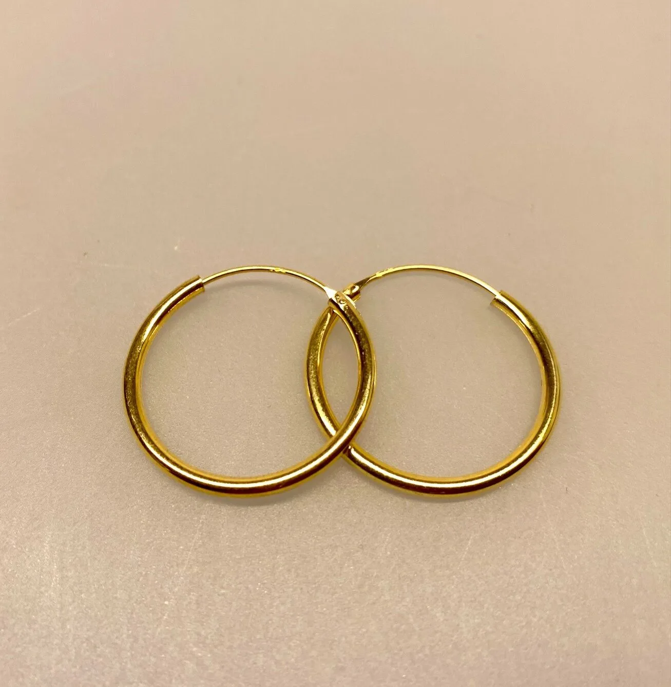 Creoler – Ø 25 mm Øreringe Forgyldt Sølv – Glatte Hoops 2 mm