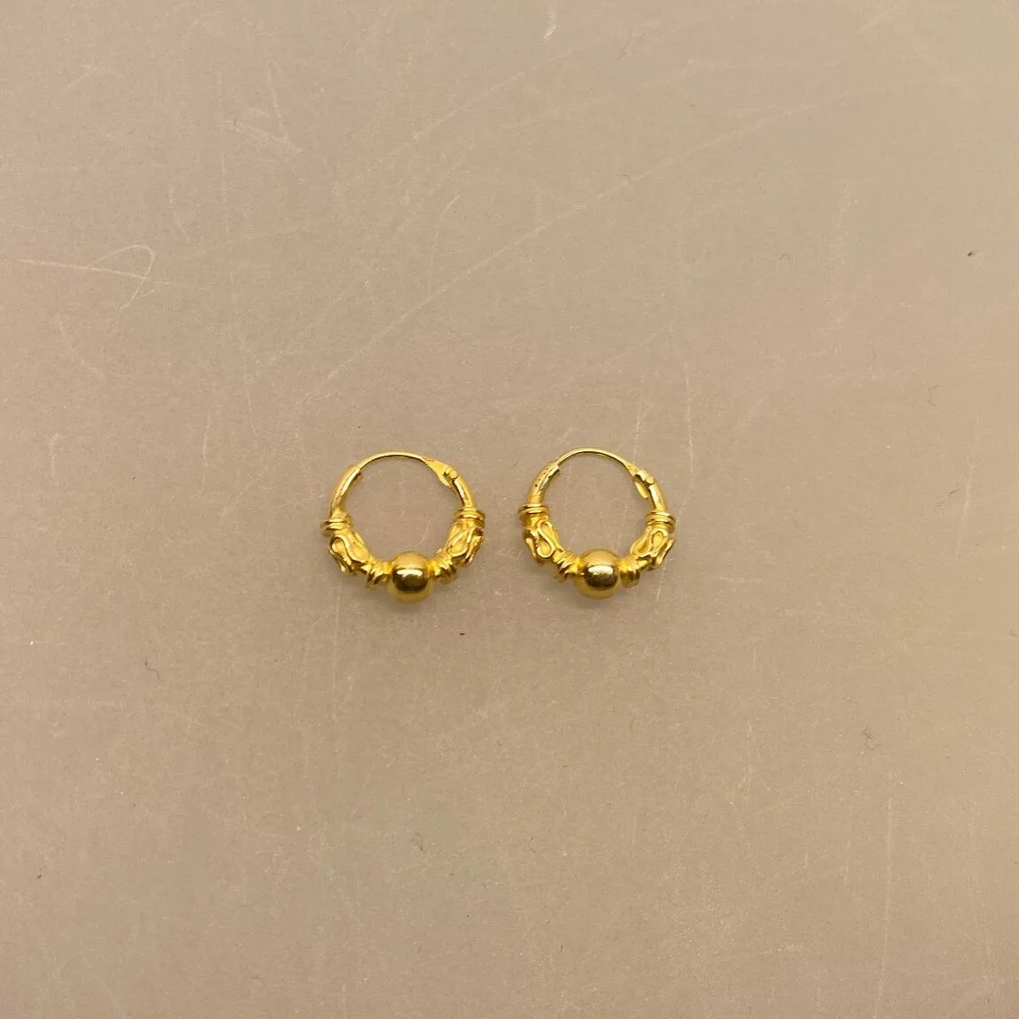 Creoler – Ø 10 mm øreringe forgyldt sølv med kugle og S-mønster
