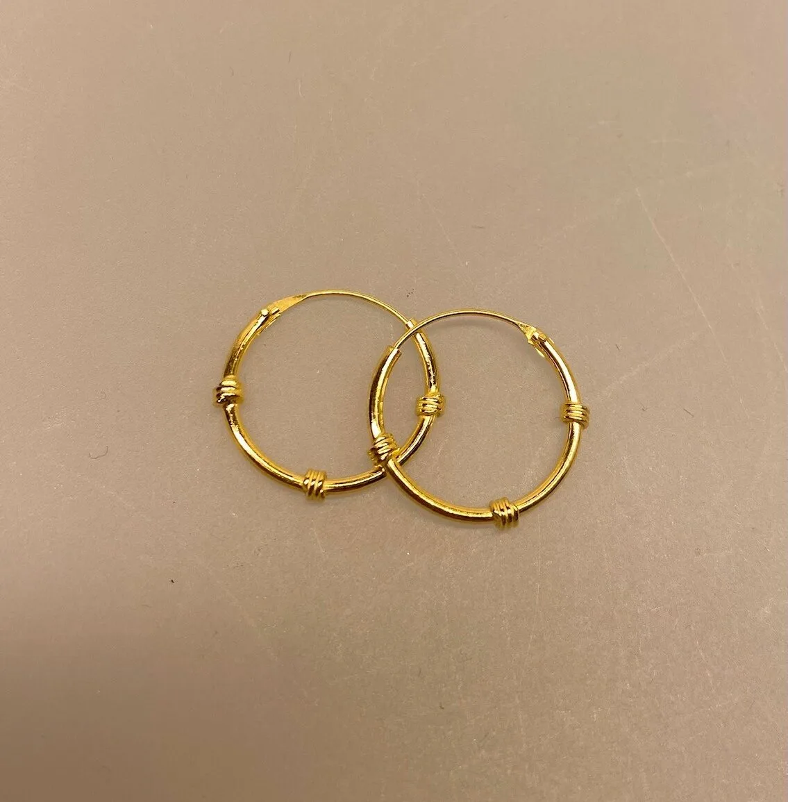 Smukke gyldne runde “hoops” – øreringe i guldbelagt sterling sølv.