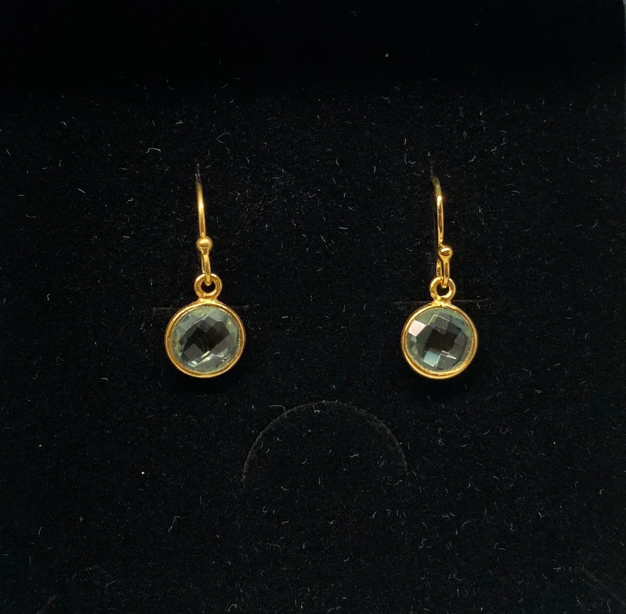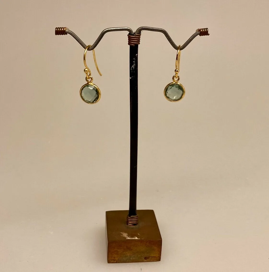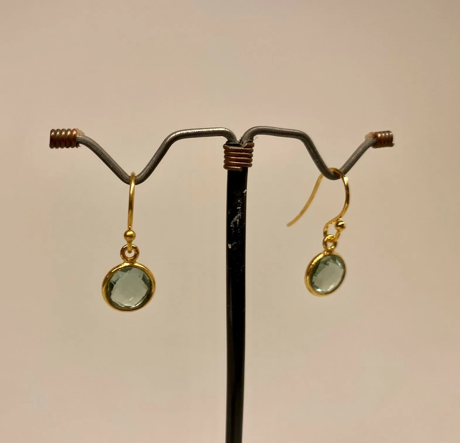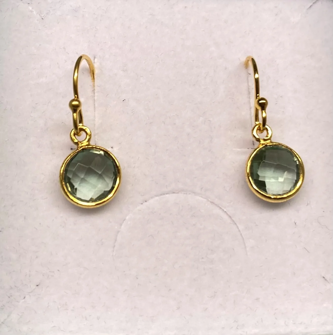 facetslebet sten – en flot grøn kvarts – champagnefarvet quartz. Øreringene er enkle og hverken for store eller for små.