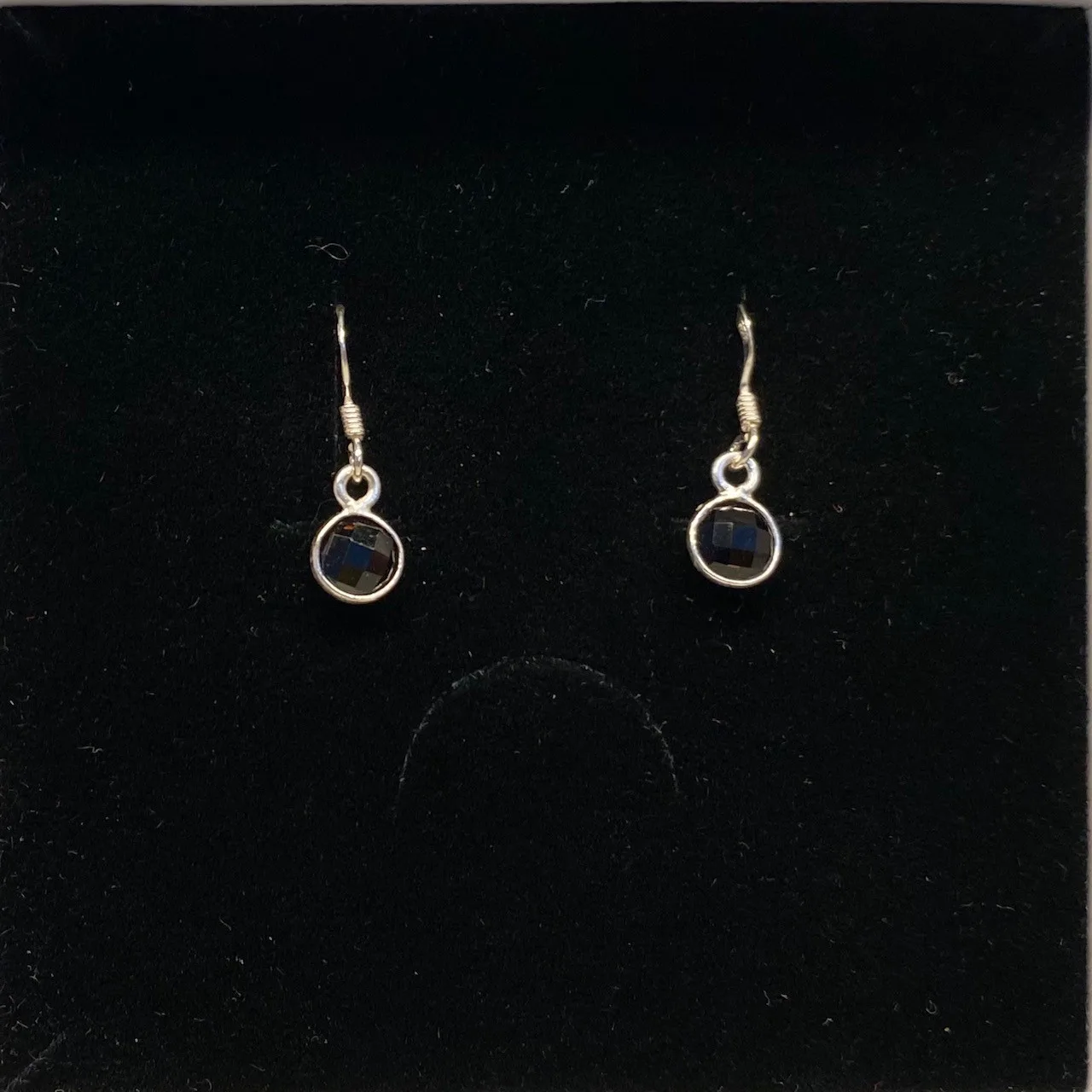 Sølv Ørenringe med små runde facetsten – Røgkvarts