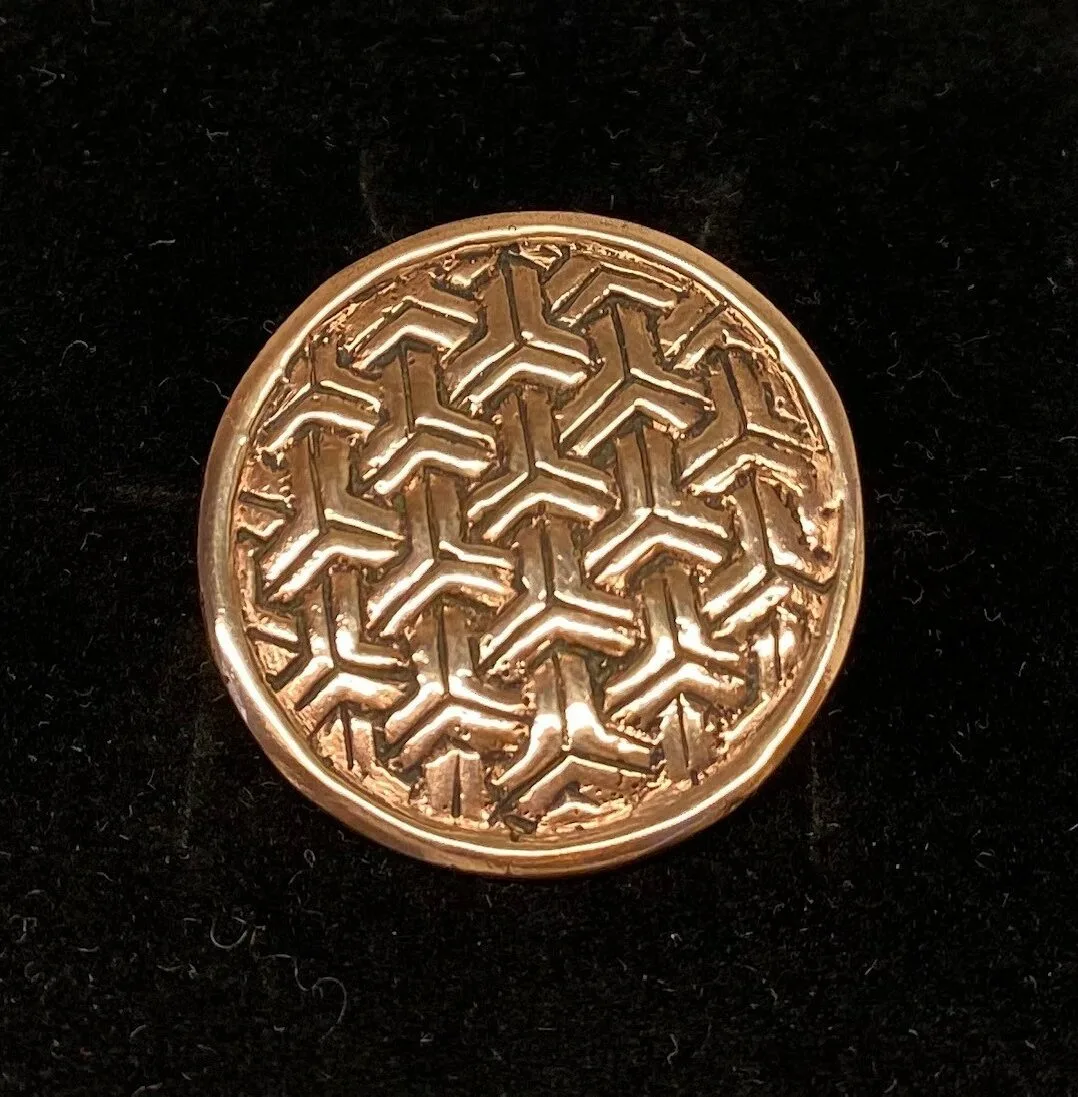 Materiale: Bronze – Bronze er en legering af tin og kobber. Metallet er således massivt og kan pudses igen og igen, hvis man foretrækker den lysere gyldne farve. Alternativt kan man lade smykkerne patinere naturligt, ved denne oxidering bliver farven dybere og mere rødlig.