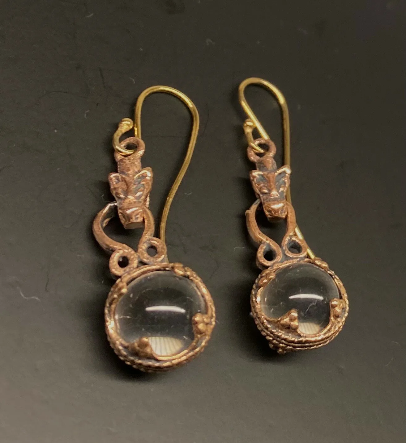 Ørehængere Bronze – Gotlandsk Krystal med Fenris 12 mm