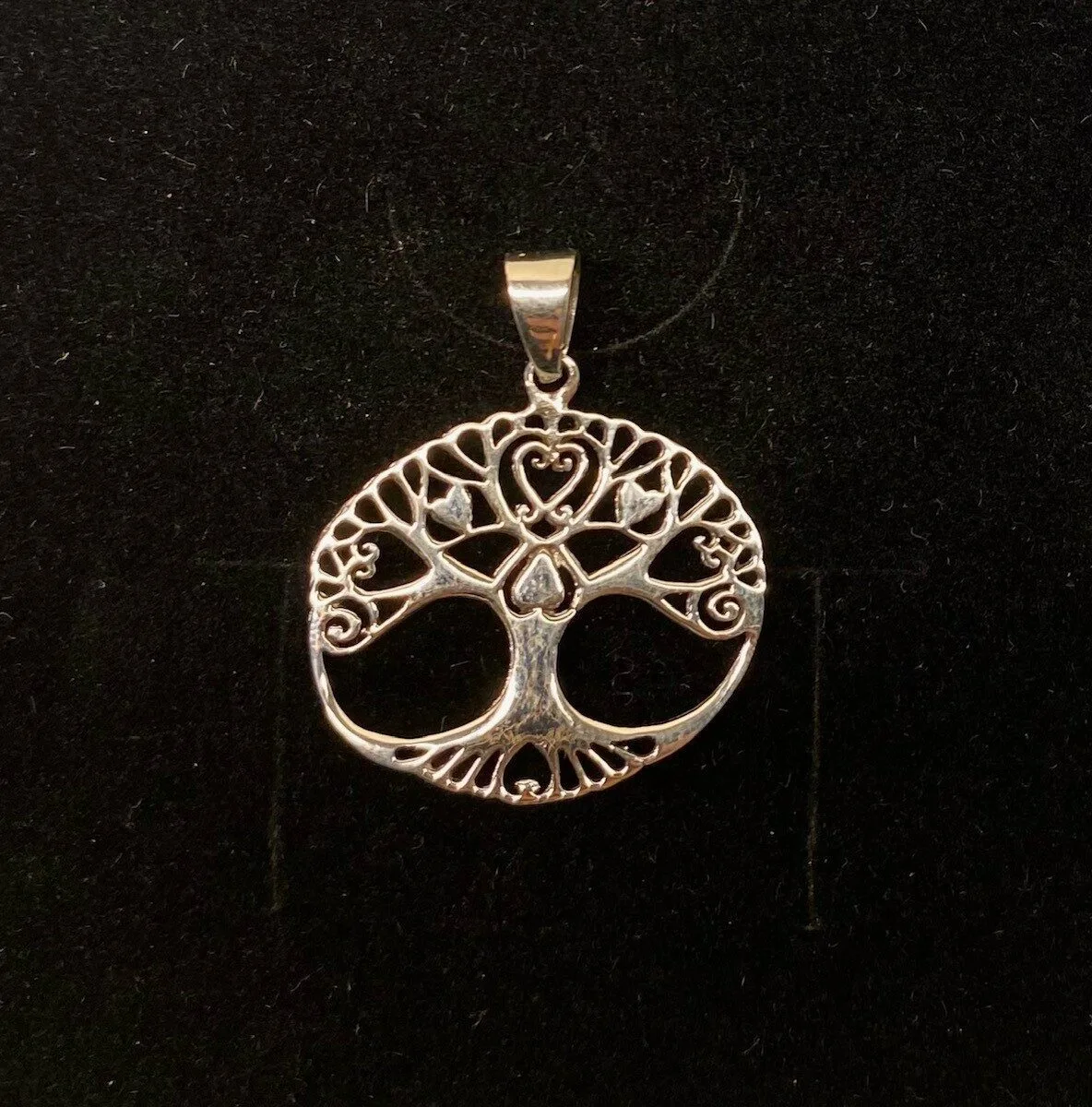 Yndig og let livstræ – Ask Yggdrasil, livets træ med hjerte motiv. Vedhænget er let ovalt, sirligt og feminint.